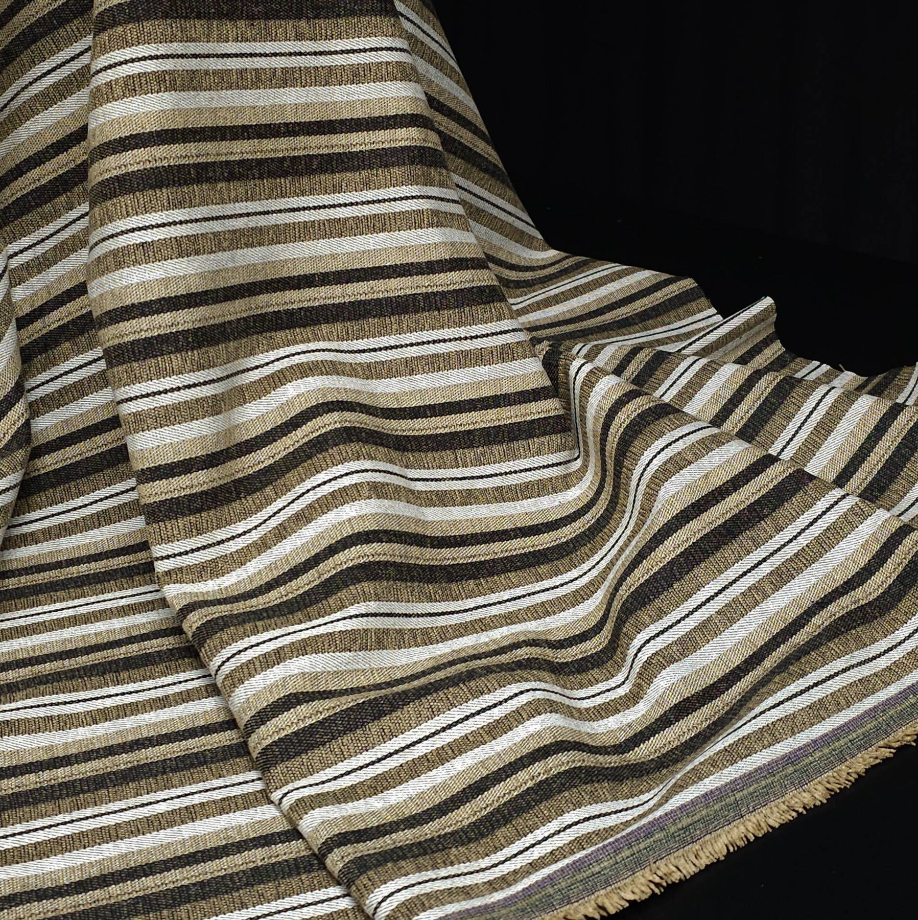 Unlike lighter shirting flannels, this fabric has a dense weave and a stable drape, making it ideal for outerwear-inspired garments and cozy winter projects. The yarn-dyed construction ensures the stripes remain crisp and rich on both sides of the fabric.