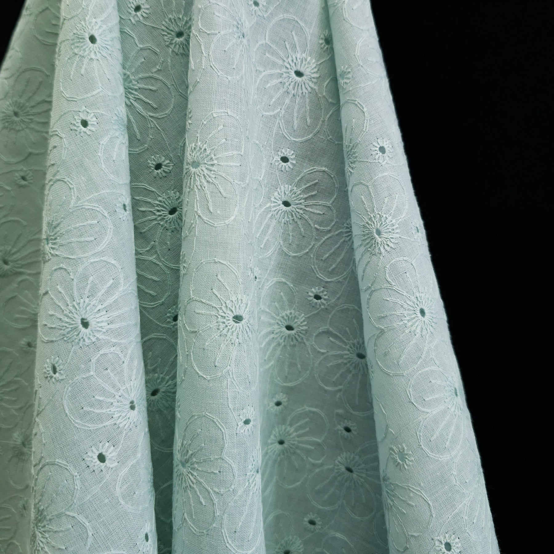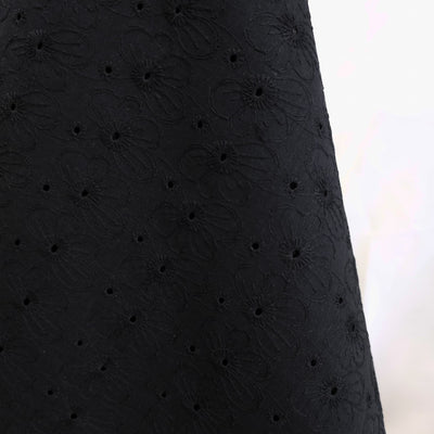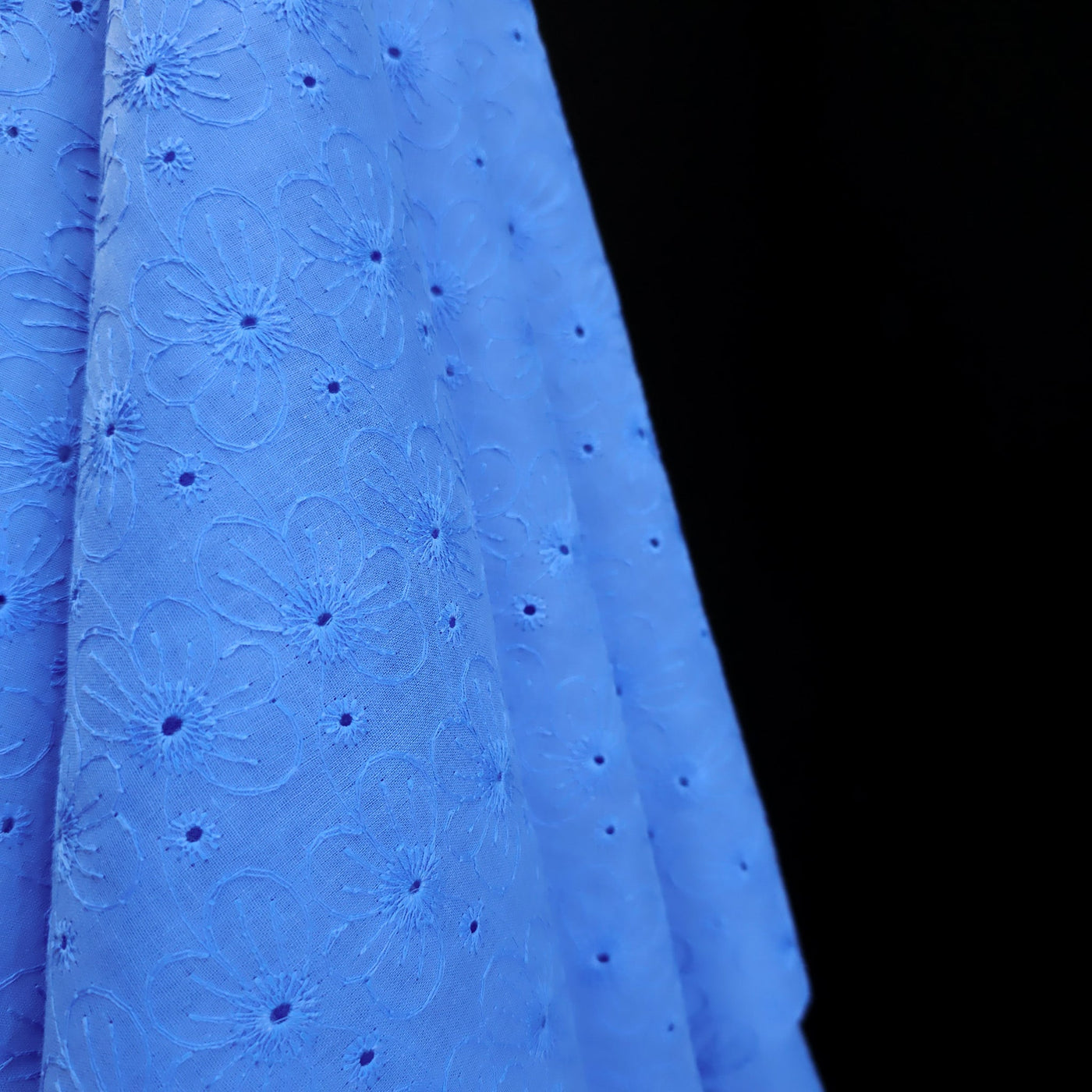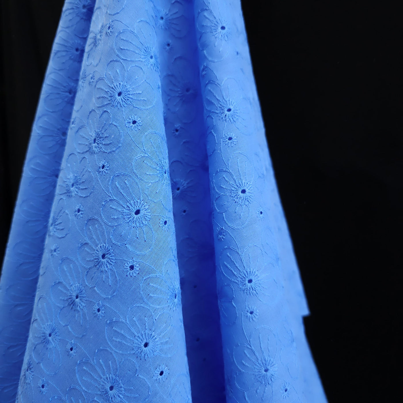 Eyelet cotton voile is a soft, breathable fabric with a delicate embroidered pattern that brings an airy, romantic touch to any garment.
