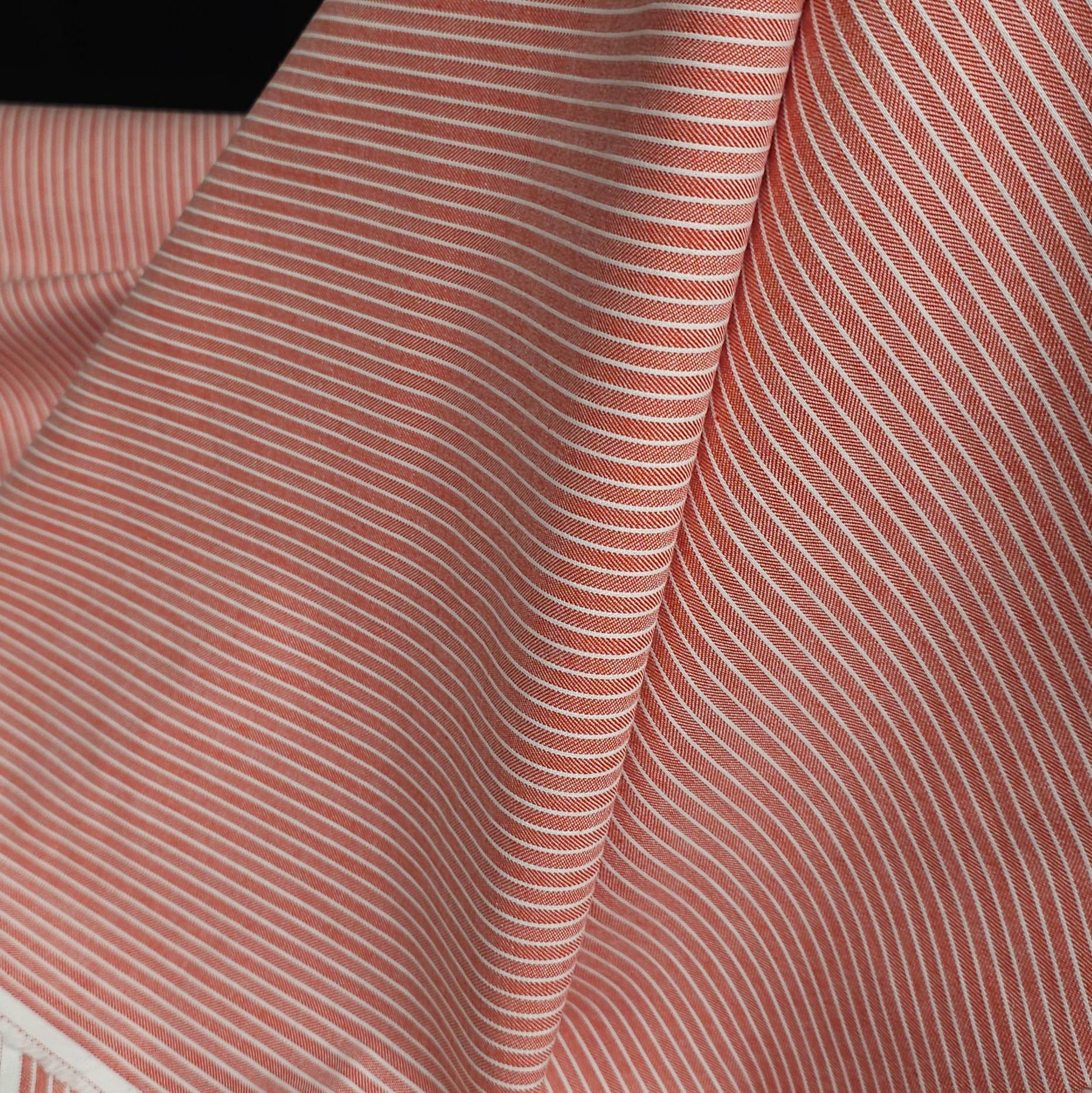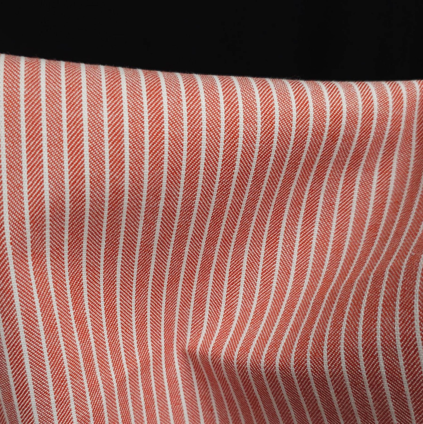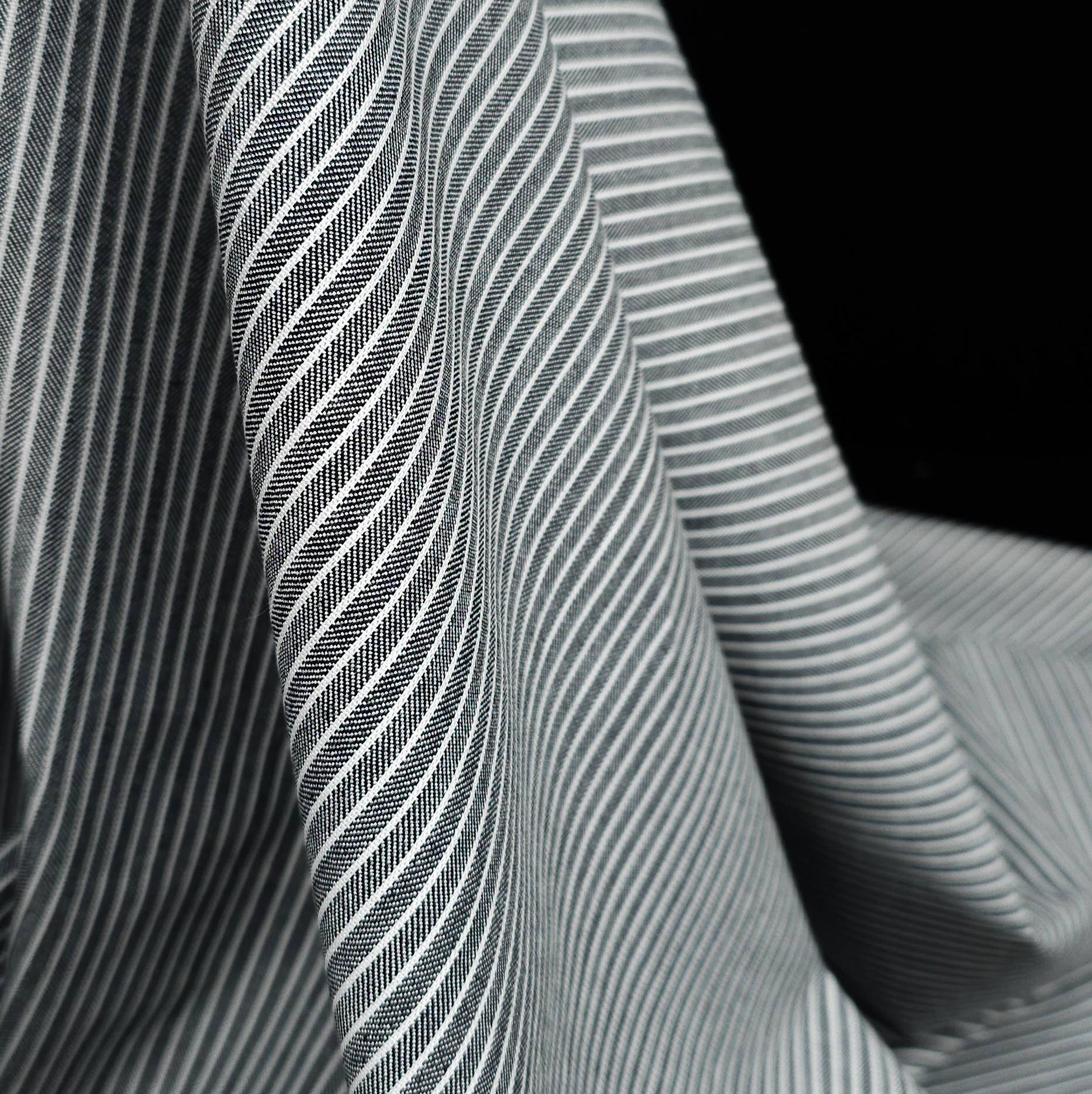 The combination of classic stripe and herringbone texture gives this fabric a timeless, elevated look—perfect for modern wardrobe staples.