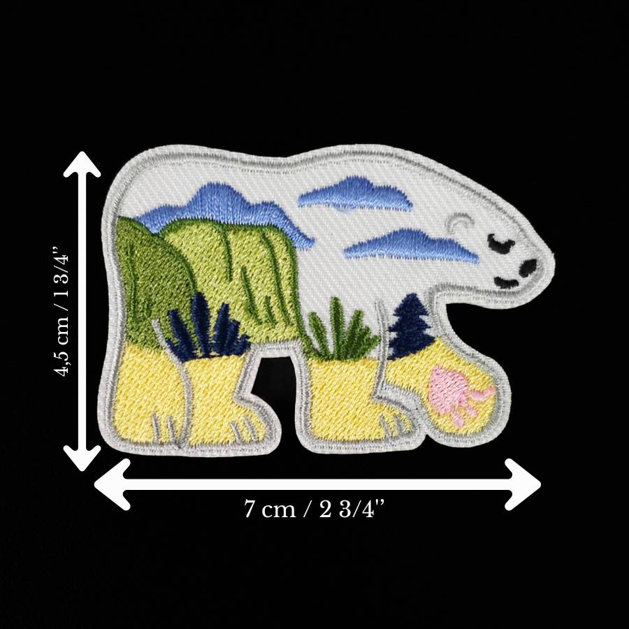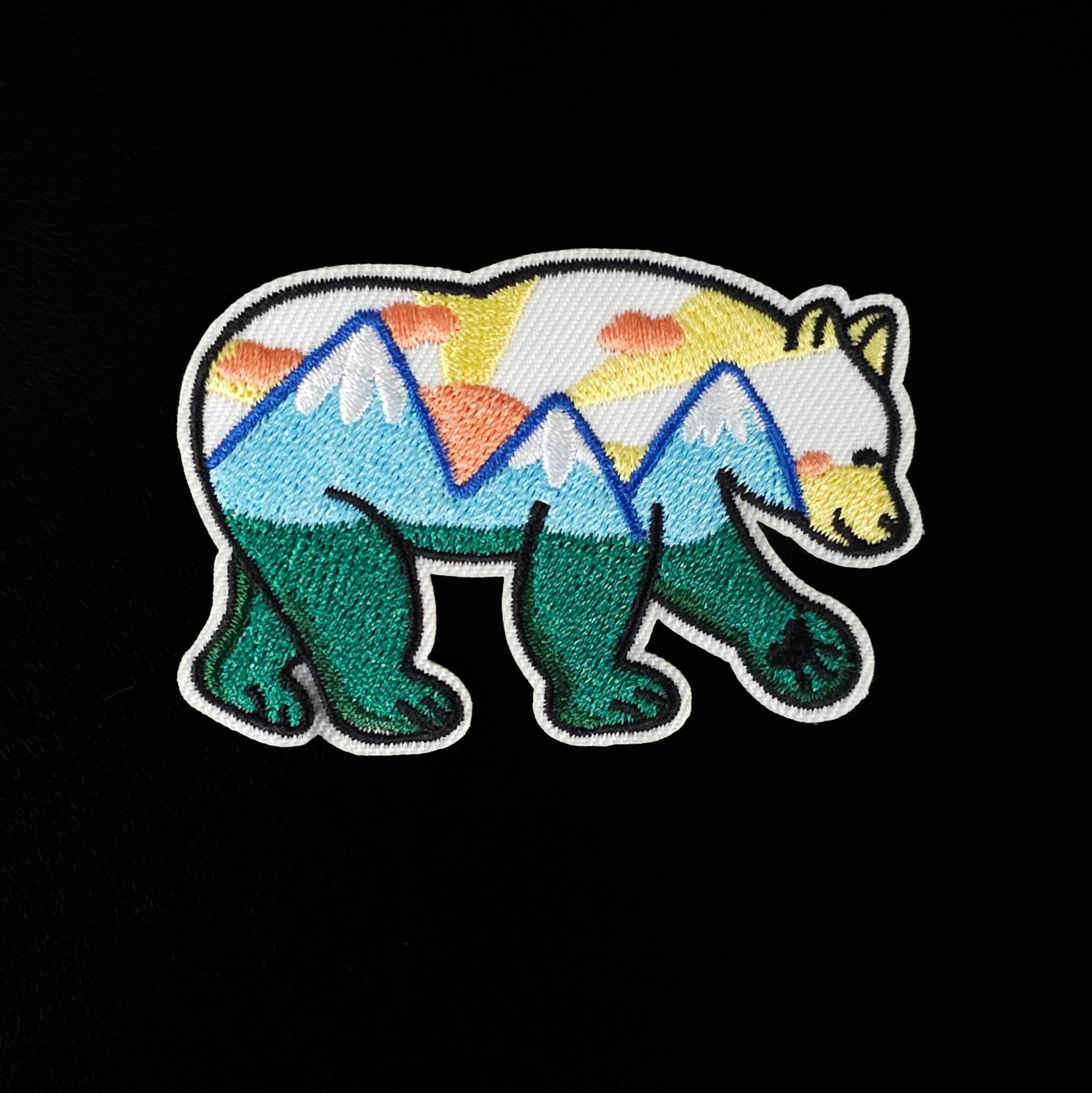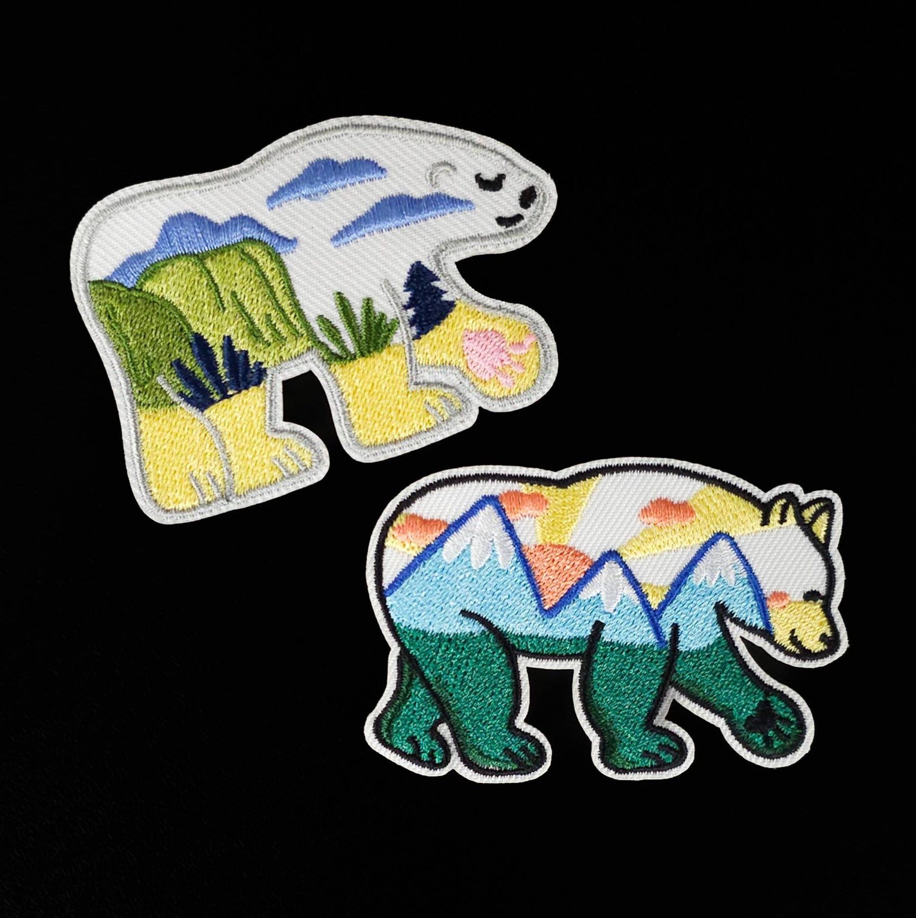 Add a nature-inspired detail to your garments and accessories with these embroidered bear landscape patches. Each patch features a bear silhouette filled with colorful outdoor scenery, combining wildlife imagery with textured embroidery for a unique decorative accent.
