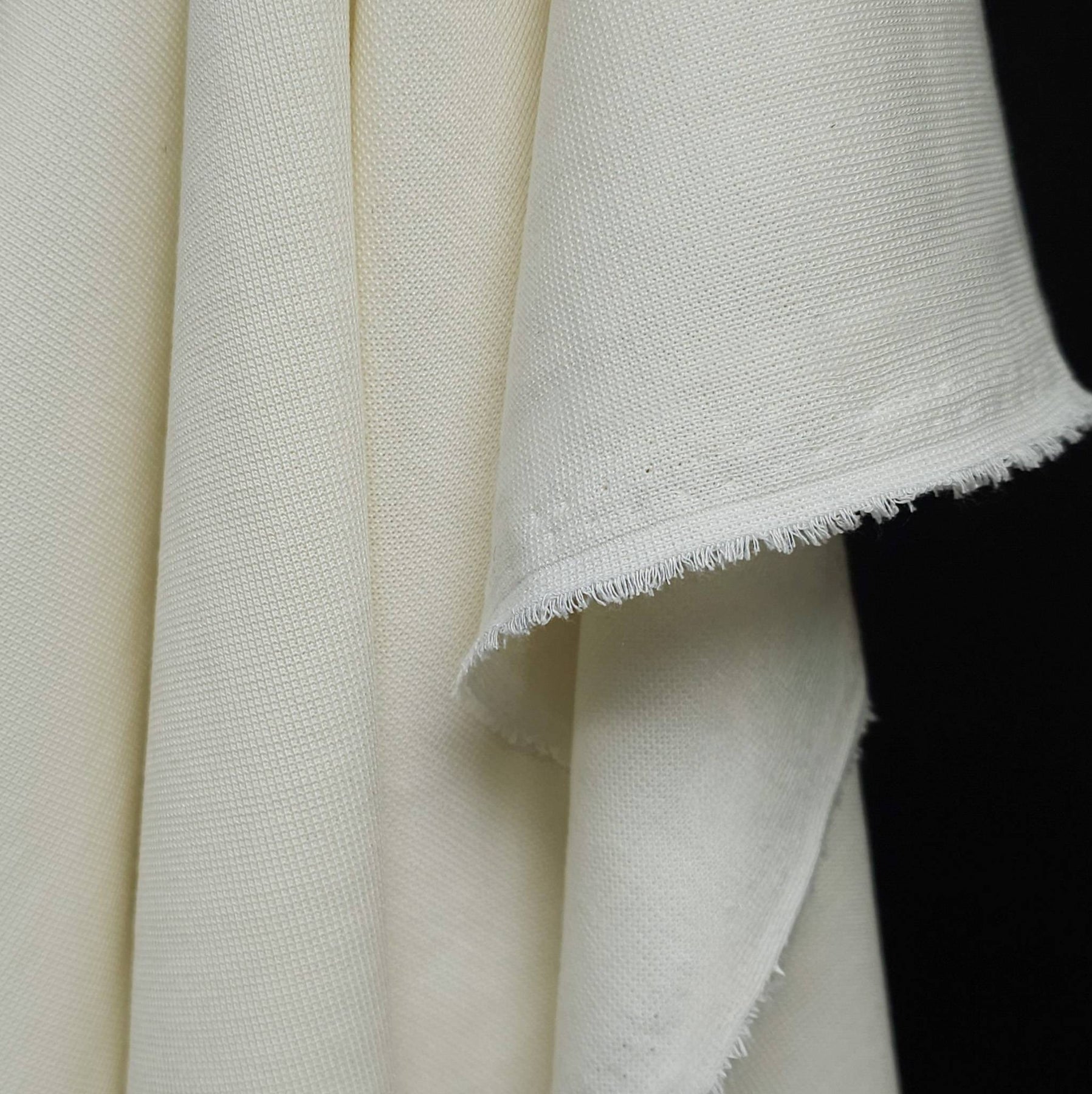 The fabric has a firm, structured hand, making it ideal for finishing details where elasticity and resilience are essential.