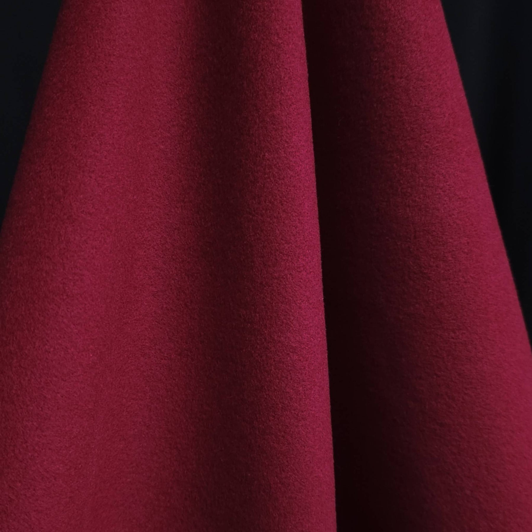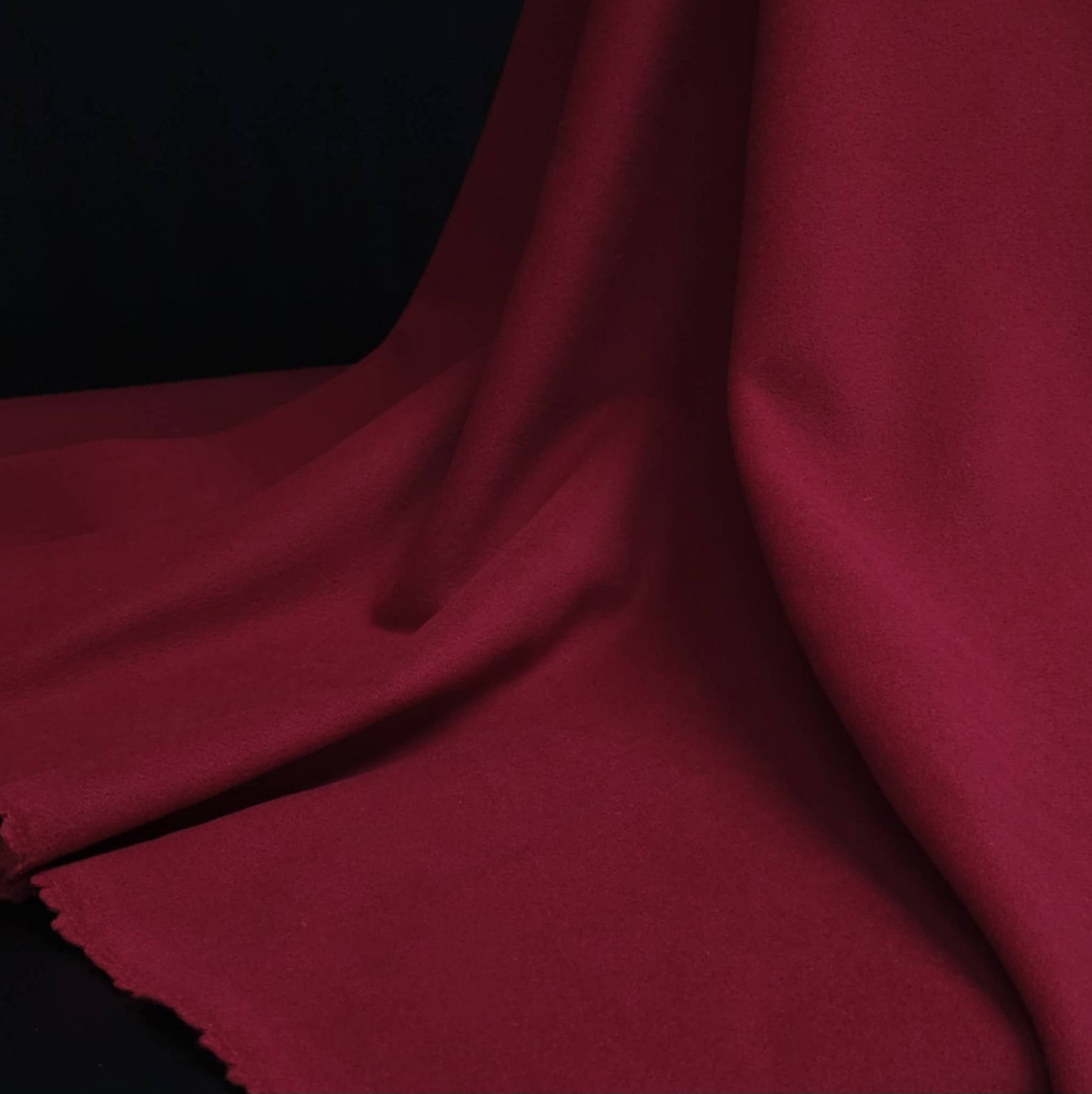 This 100% wool coating fabric features a bold, red tone with a refined, elegant character. Woven from pure wool, it offers an ideal balance of warmth, structure, and fluid drape. The surface is lightly brushed, giving the fabric a smooth, felted finish that feels soft and luxurious to the touch.