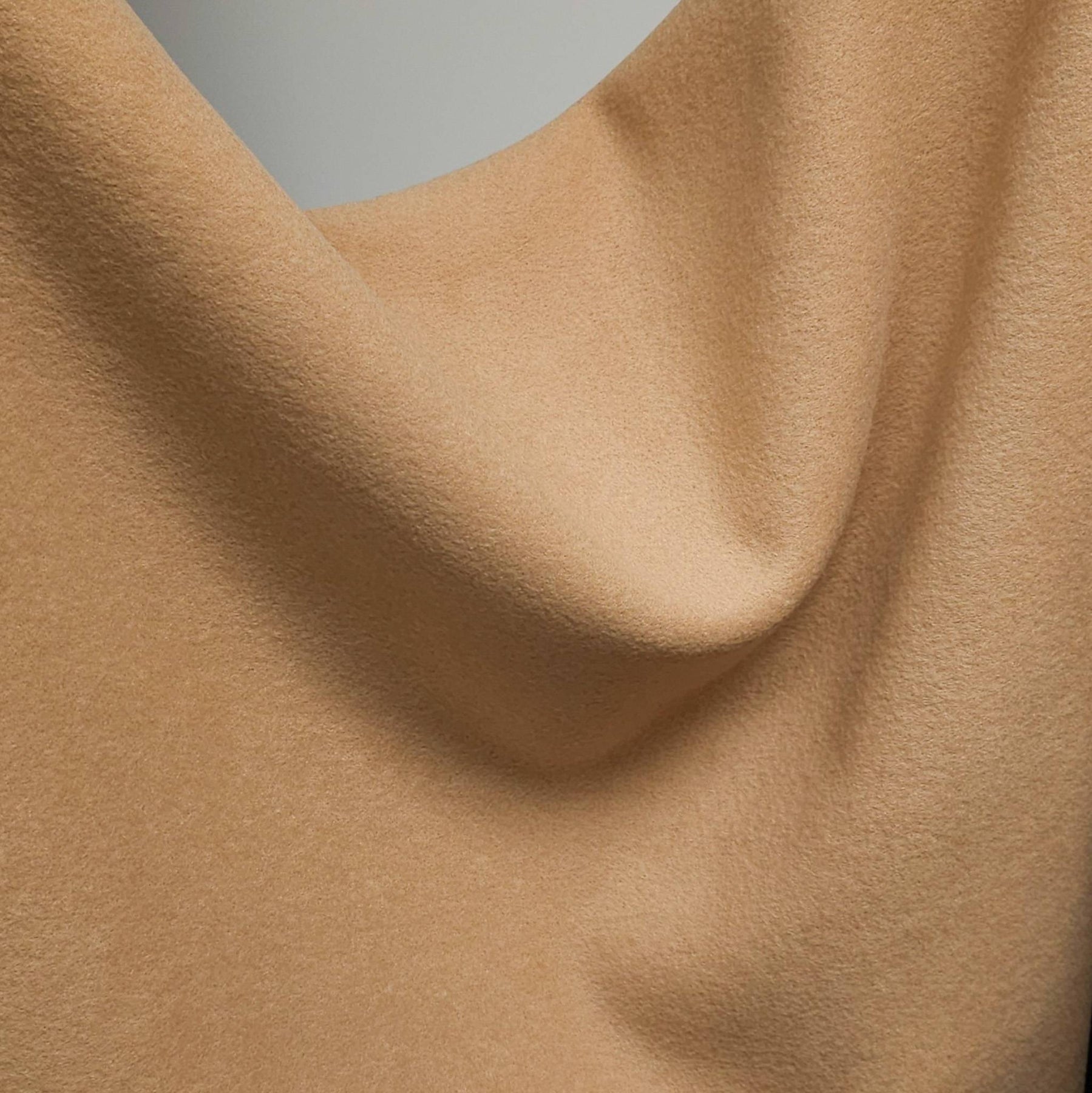 Both sides are lightly brushed to a smooth, felted finish, allowing the fabric to be used interchangeably without lining. The result is a premium wool ideal for minimalist and architectural garments, where clean edges and thoughtful construction take center stage.