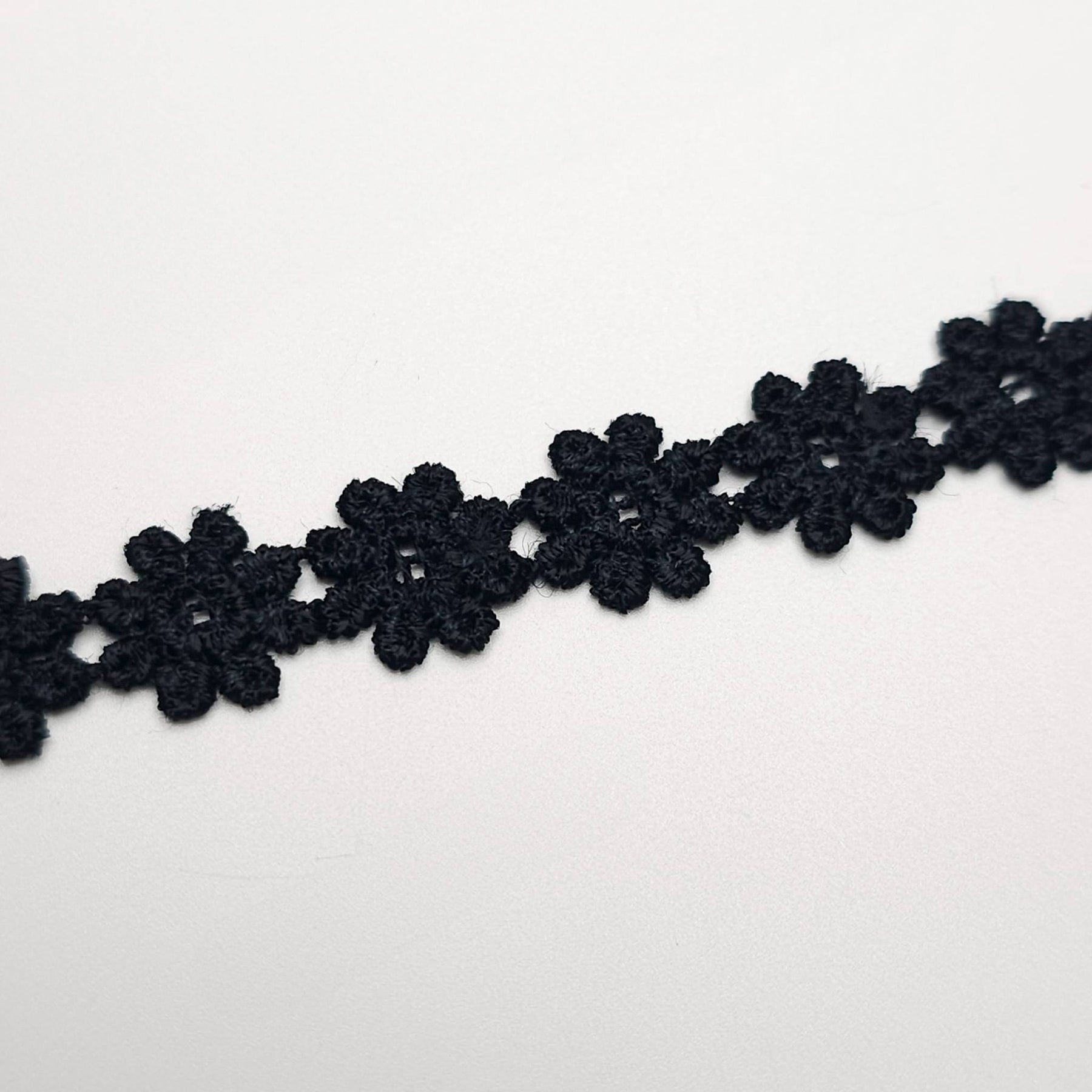 Decorative Trim Ribbon | Flowers | Black | 11 mm