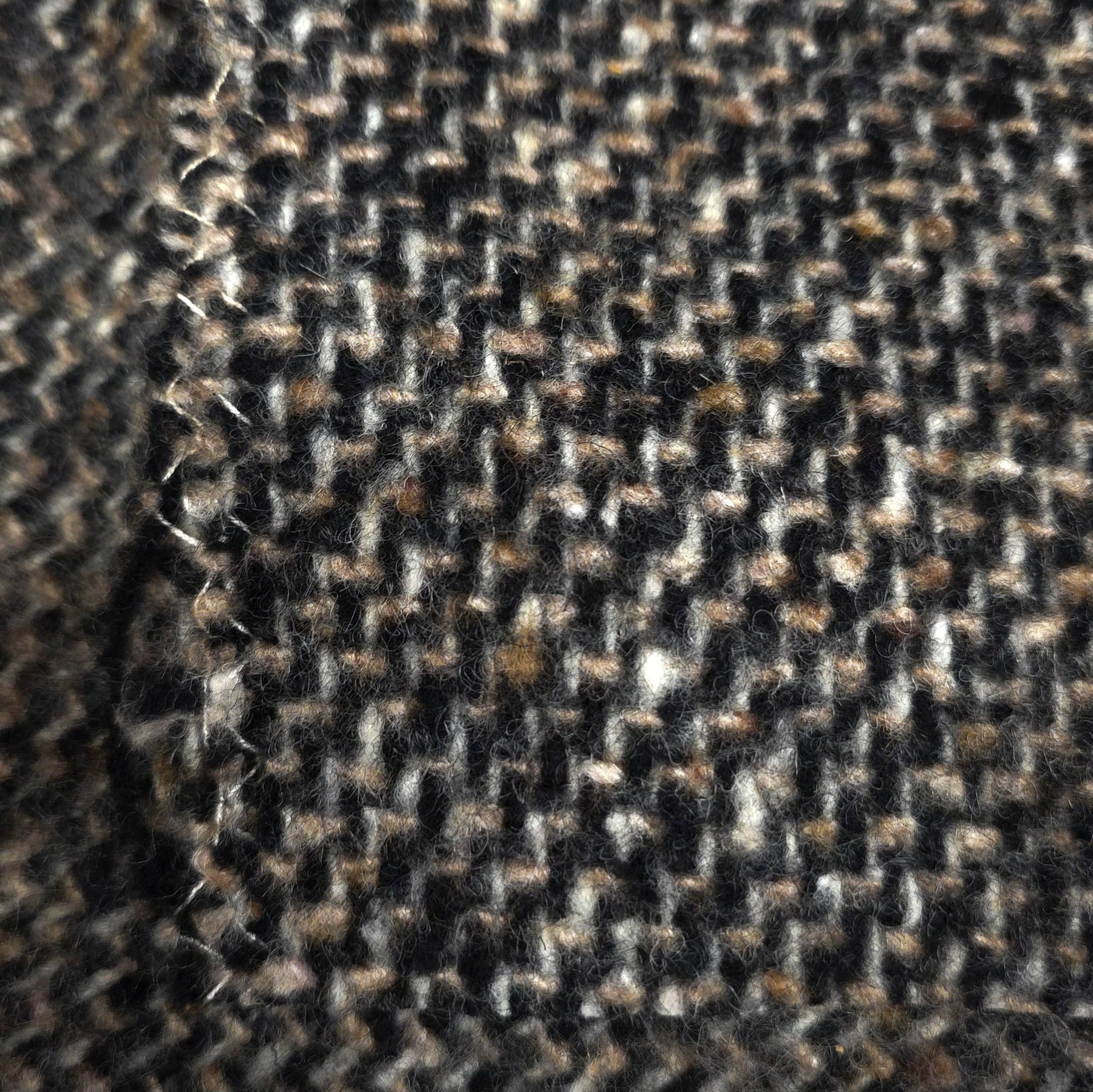 This luxurious 100% virgin wool tweed in black and brown is a heavyweight fabric with a rich, textured finish.