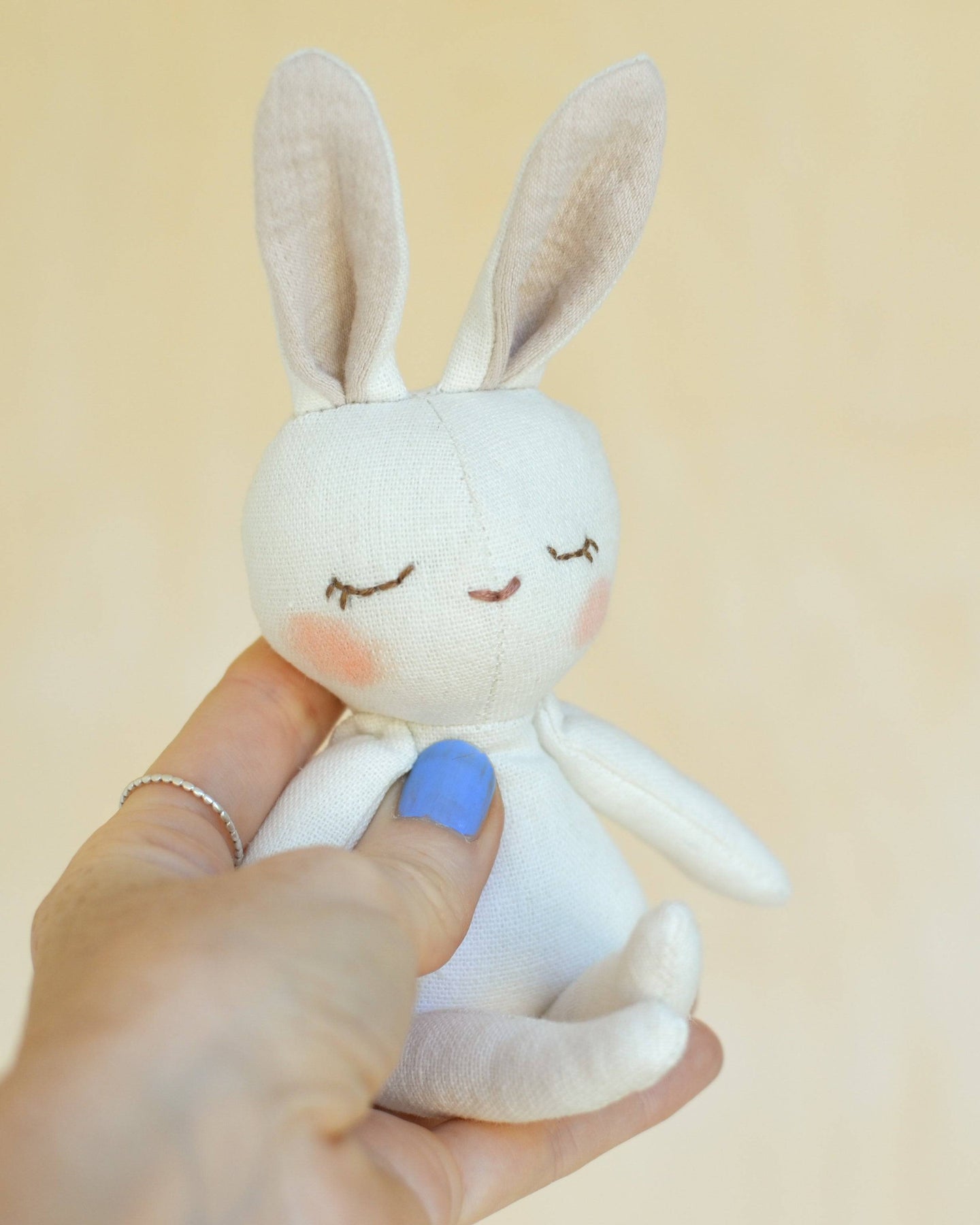 Make your own Mes Petites Lunes mini bunny doll and its carrot bed with this easy step-by-step tutorial and professional sewing pattern.