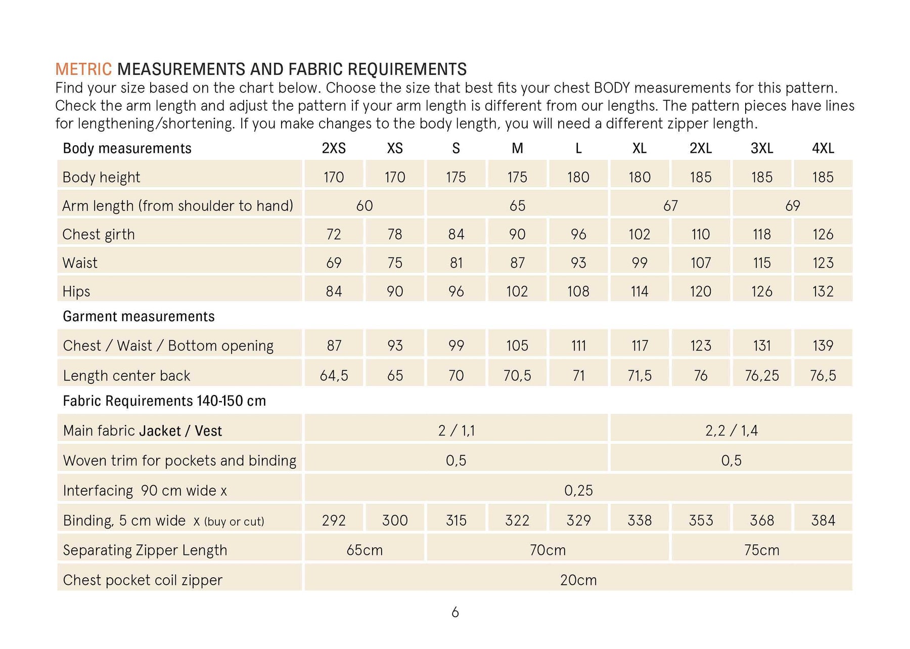 Flip through the product images for fabric requirements and measurement charts.