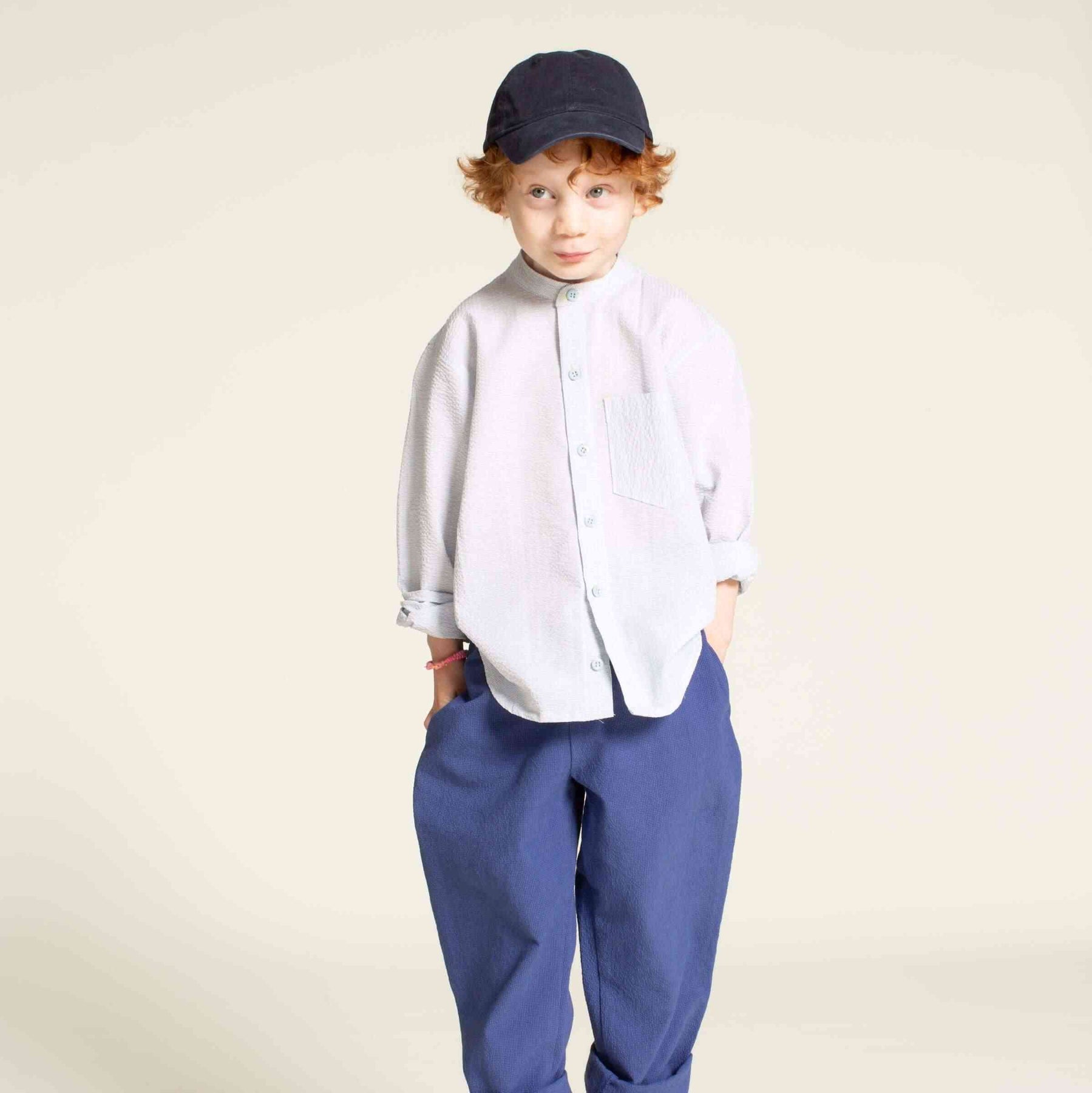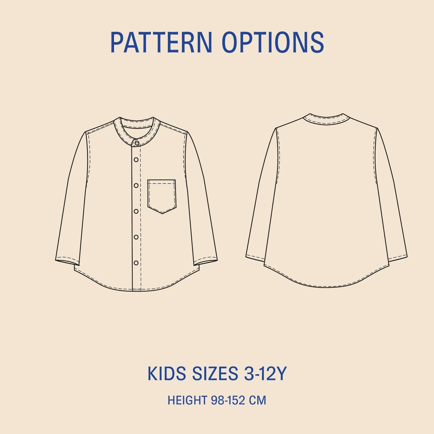 The Mini Jensen Shirt Sewing Pattern is a modern, versatile button-up shirt for kids aged 3–12, combining comfort with timeless style.