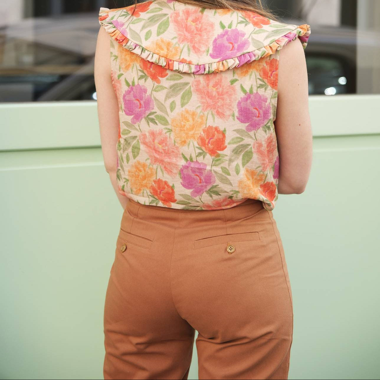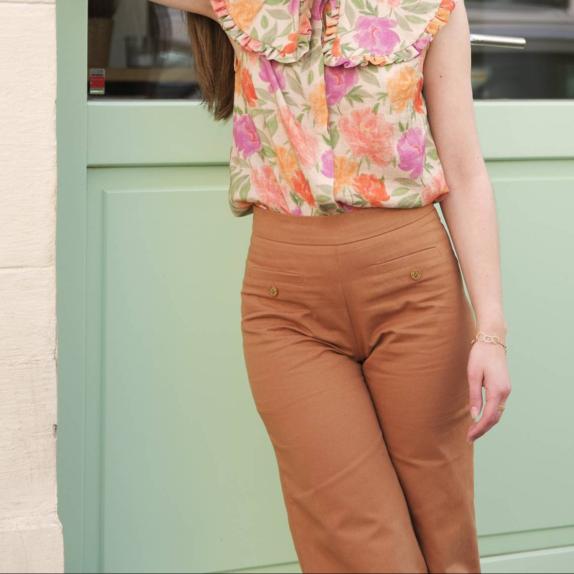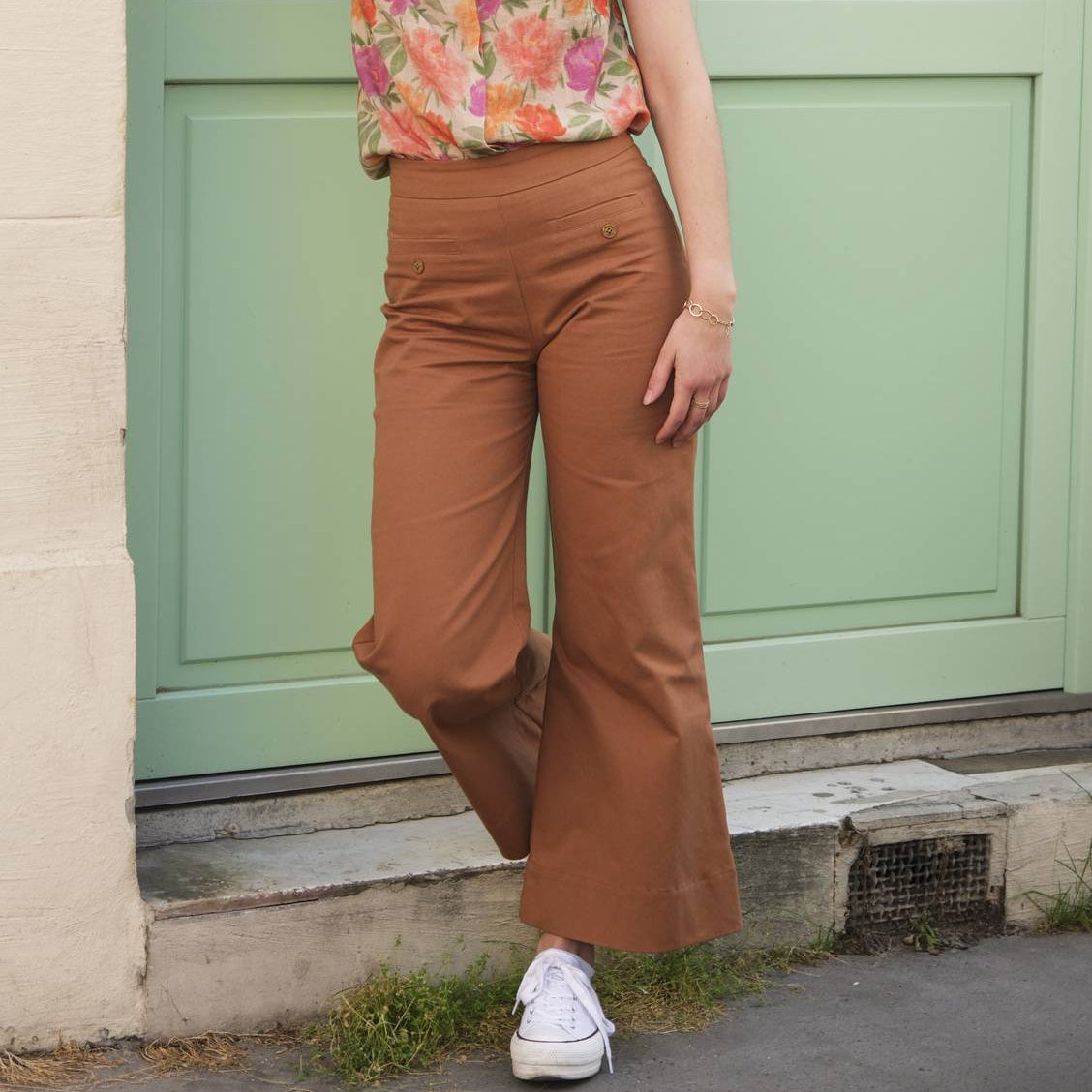 The Charly Trousers are a timeless flared (bell-bottom) pants sewing pattern, fitted at the hips and gradually widening toward the hem for a flattering, elongated silhouette. Designed to be worn year-round, the Charly Trousers adapt easily to the seasons depending on fabric choice.