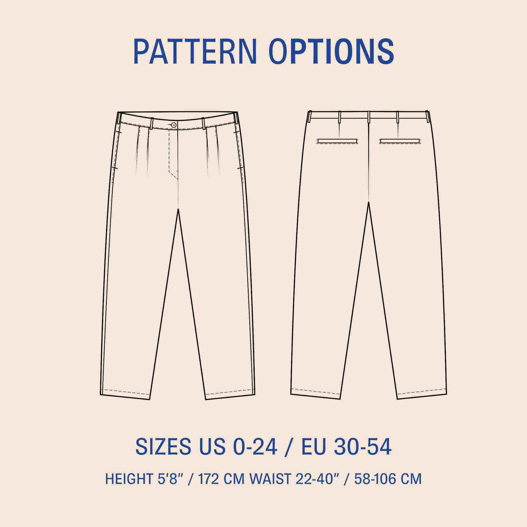 This pattern includes a fly front zipper and contoured waistband. You should be comfortable with zippers and waistband construction. Instructions are fully illustrated, and a YouTube sew-along is included.