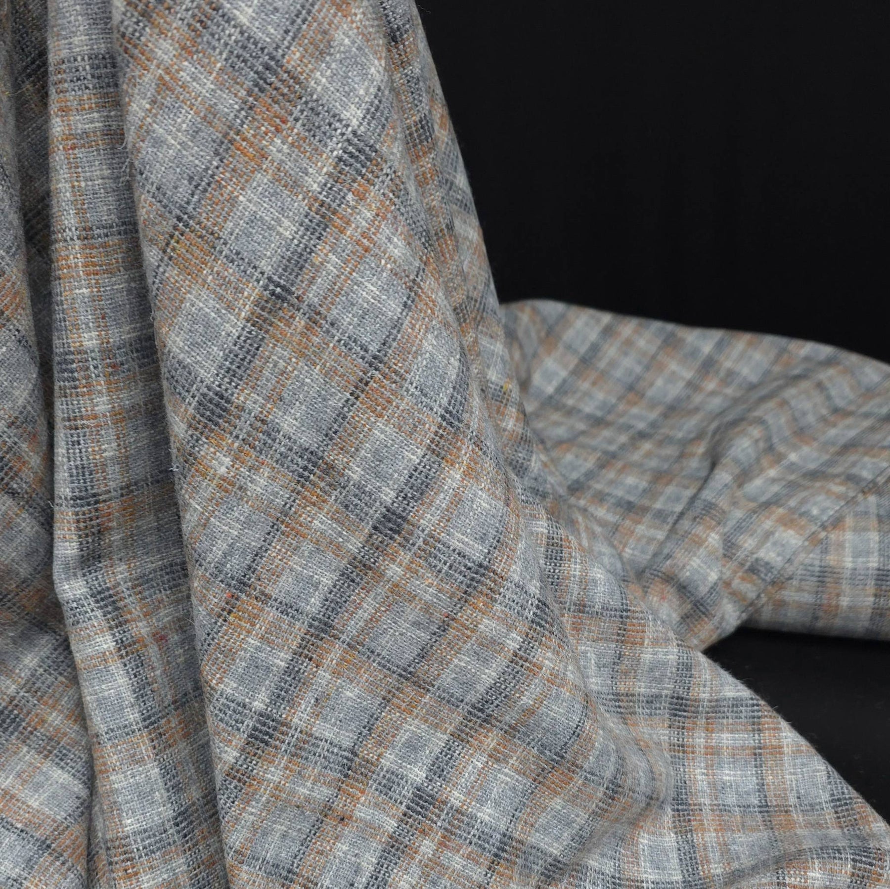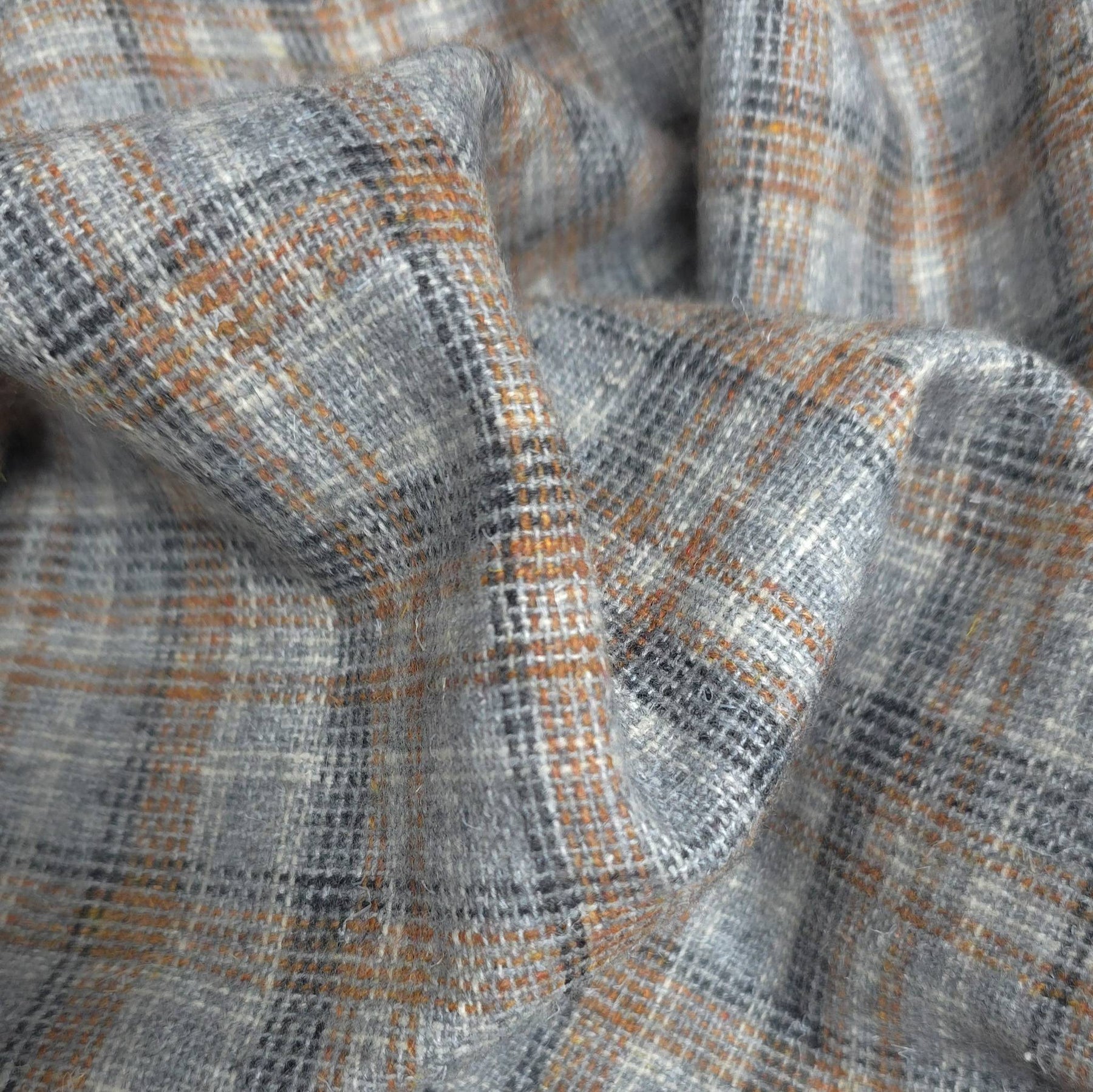 Lightweight Wool-Blend | Plaid | Grey & Burnt Orange