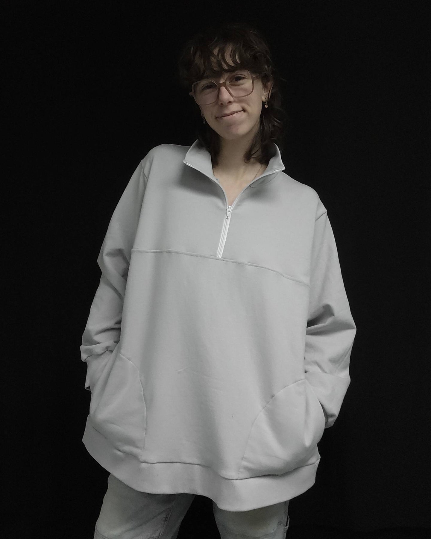 The Zip-Up Sweater Sewing Pattern features a comfortable, relaxed fit with a zip-up front, making it both practical and stylish.