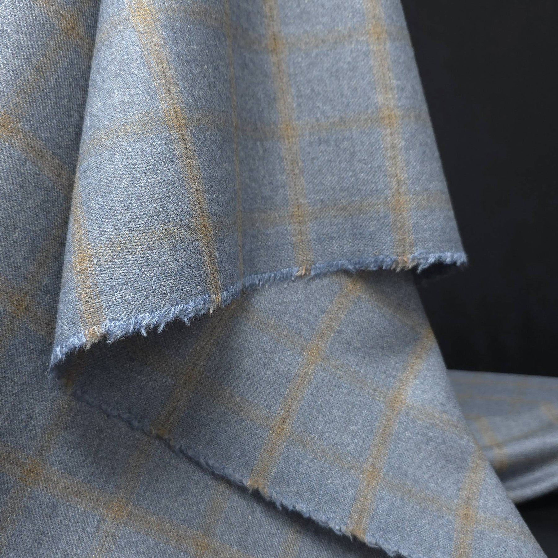 Lightweight Windowpane Suiting Wool | Blue & Camel
