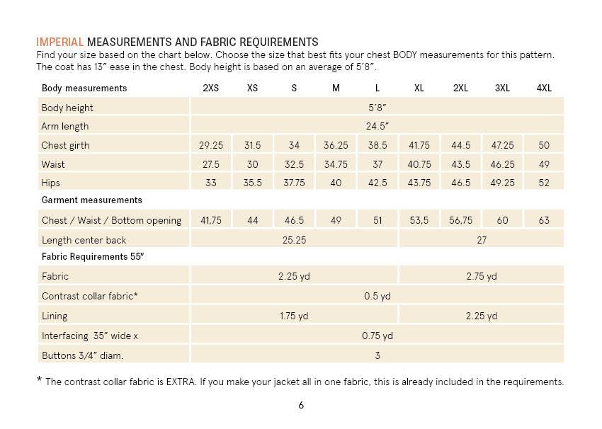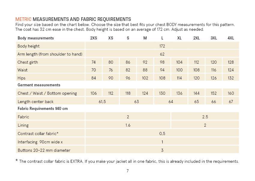 The Car Coat works beautifully in medium to heavyweight woven fabrics such as wool, boiled wool, tweed, jacquard, denim, or heavy cotton. Select a fabric with sufficient structure to maintain the jacket’s shape.