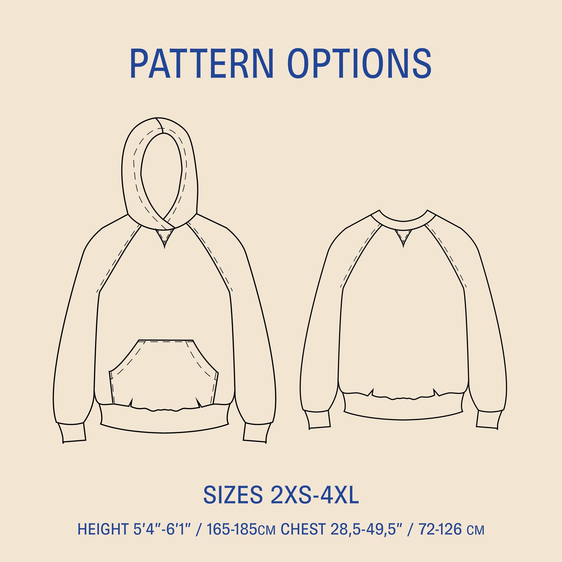 Perfect for creating a cozy addition to your wardrobe, this pattern features a relaxed fit, a fully lined hood, and options for a classic cuffed hem and sleeves or a sporty kangaroo pocket.