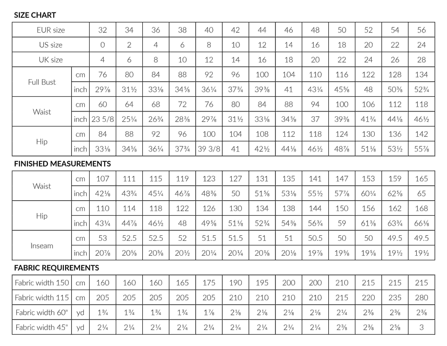 Sizes: EUR 32-56 | US 0-24 | UK 4-28