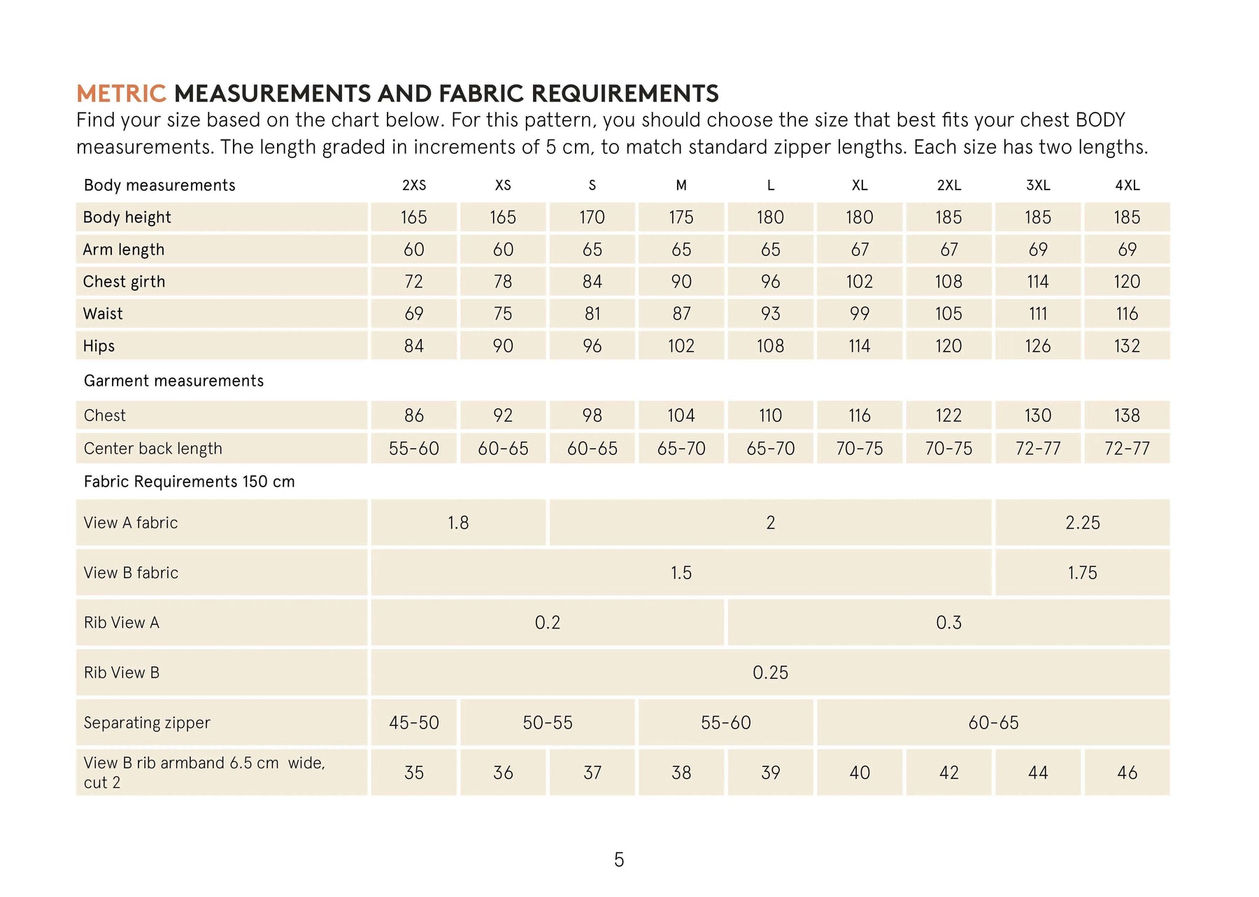 metric measurement fabric requirement - PDF Sewing Pattern | Zipper Hoodie | Unisex | Wardrobe by Me