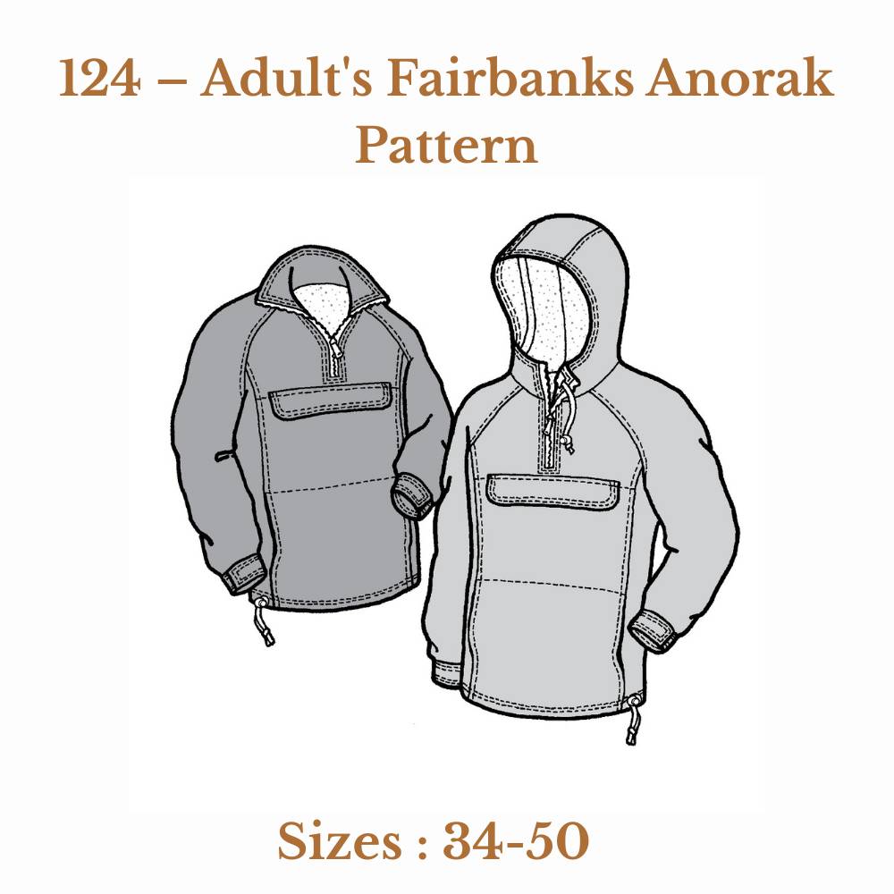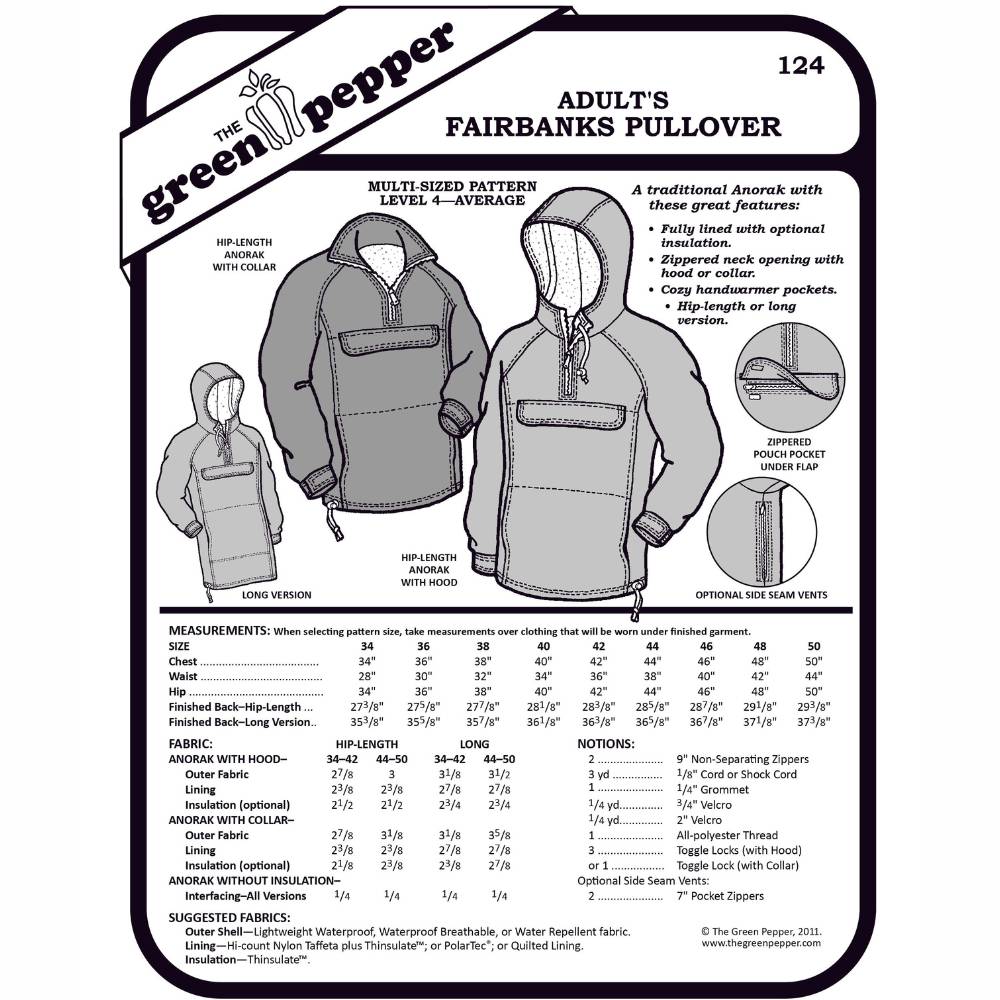 The Fairbanks Pullover sewing pattern by The Green Pepper is a traditional anorak-style jacket designed for warmth, durability, and outdoor performance. This fully lined pullover includes an optional insulation layer, making it ideal for cold-weather layering and technical outerwear sewing.