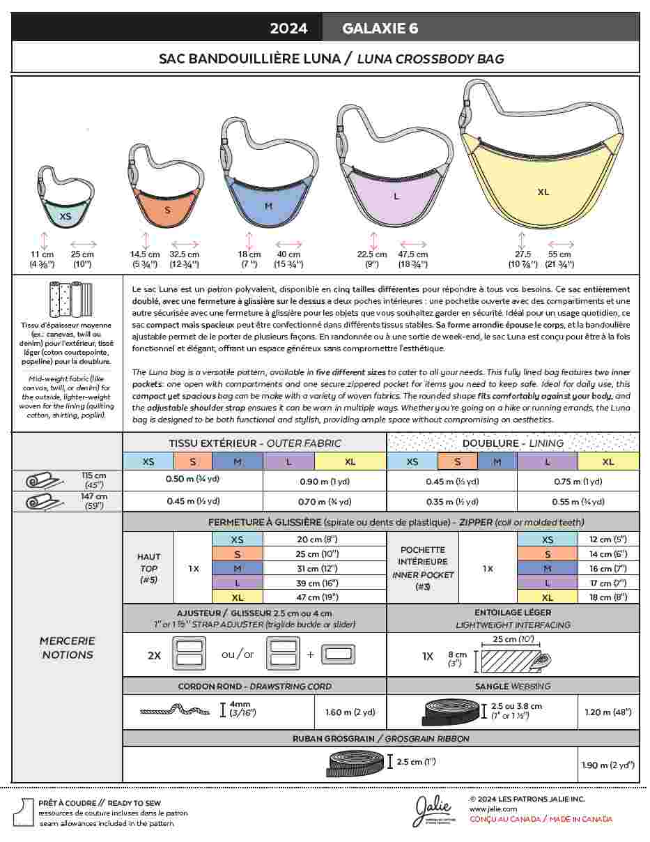 PDF SEWING PATTERN | GALAXIE 6 | Crossbody Bags | Unisex | Jalie
