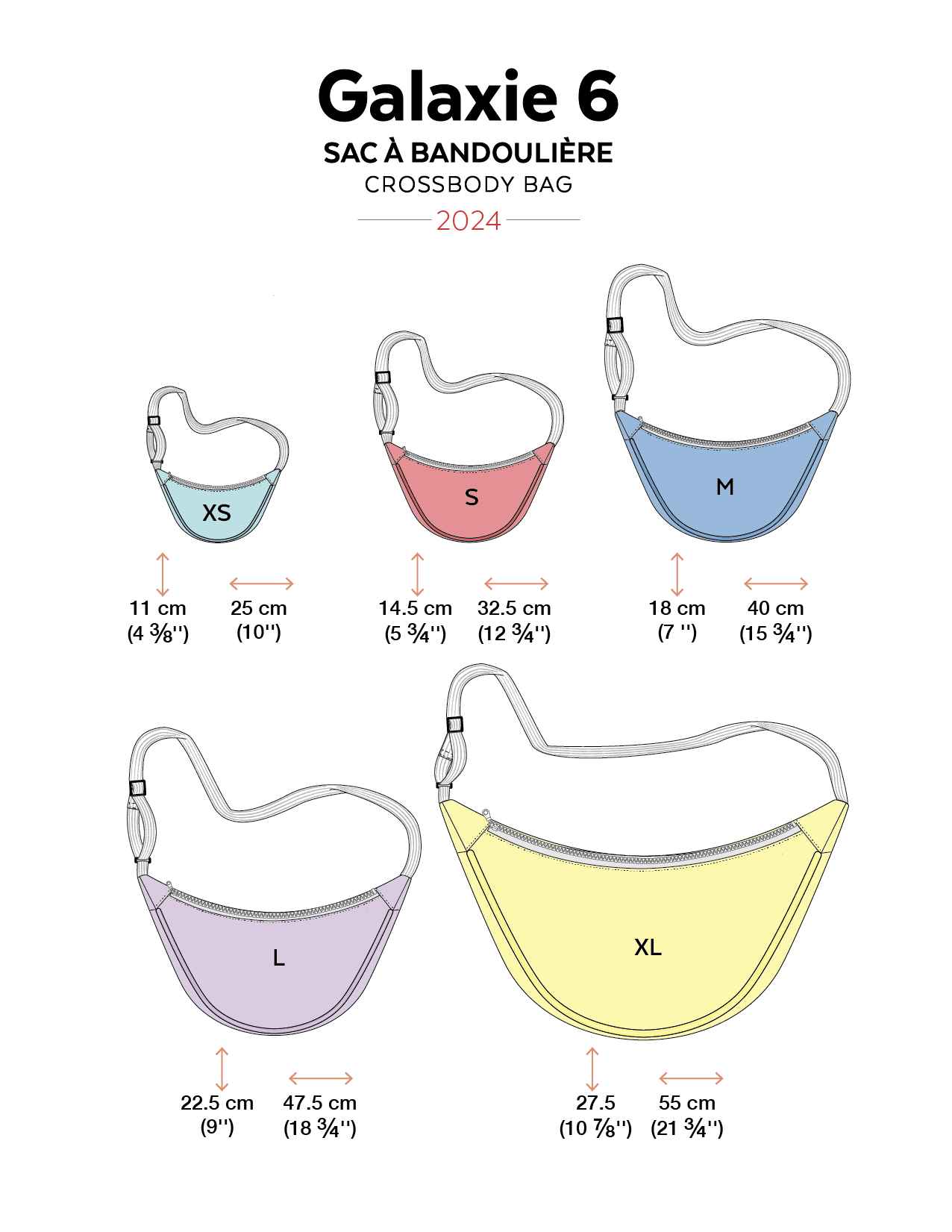 Luna Crossbody Bag sewing pattern in five sizes XS to XL