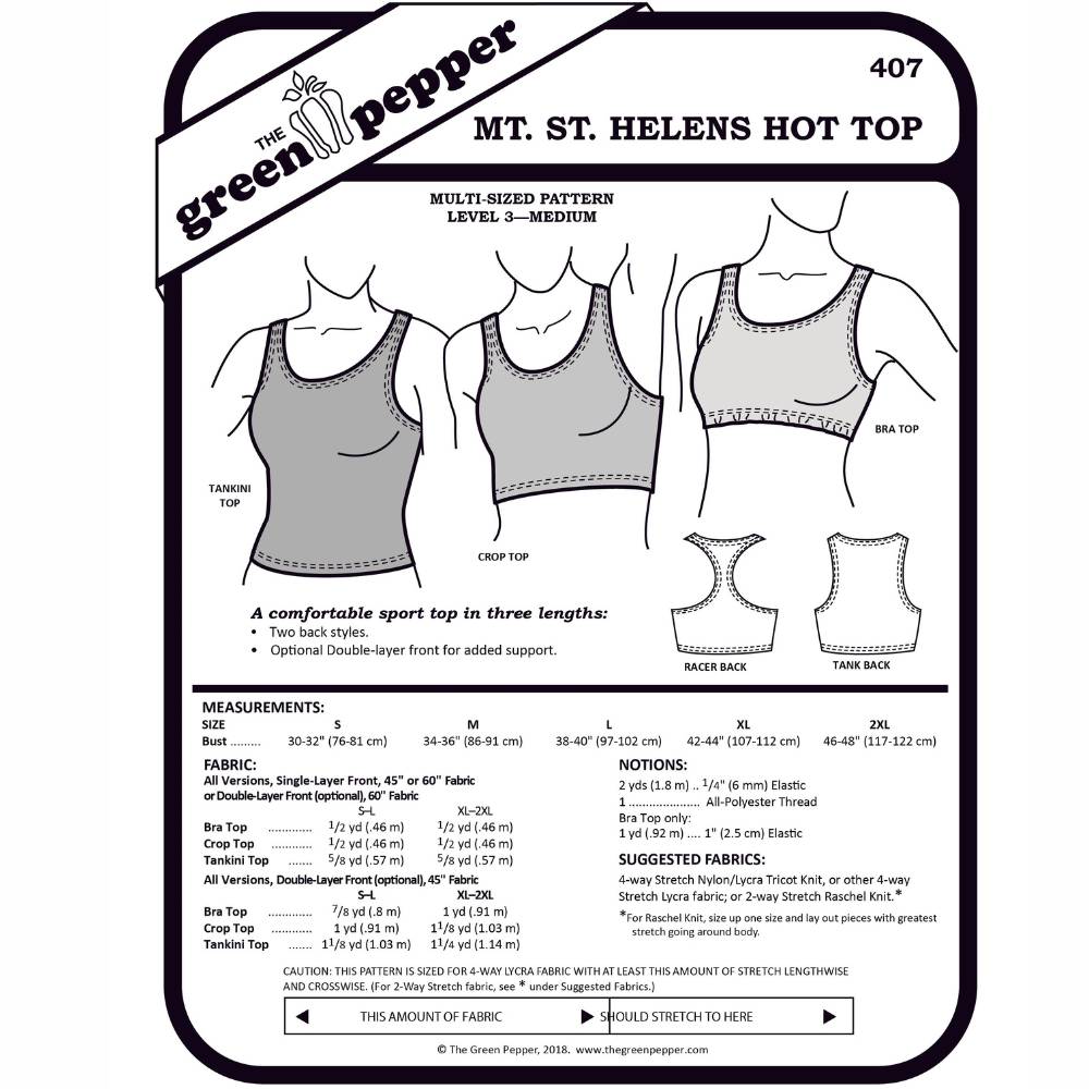 Sew a comfortable and versatile sport top in three different lengths with this activewear sewing pattern. The Mt. St. Helens Hot Top can be made as a bra top, crop top, or tankini, making it ideal for exercise, swimwear, or everyday layering.