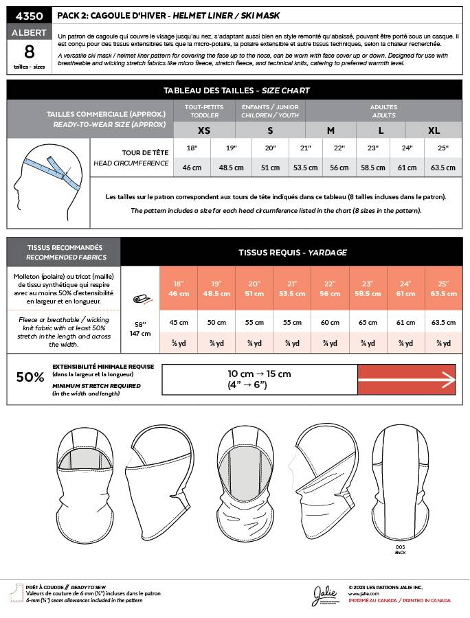 The ALBERT Winter Headwear pattern is a versatile bundle designed to keep you warm during cold-weather activities. This thoughtfully engineered set includes three different winter accessories, allowing you to sew functional, comfortable, and stylish headwear for the whole family.