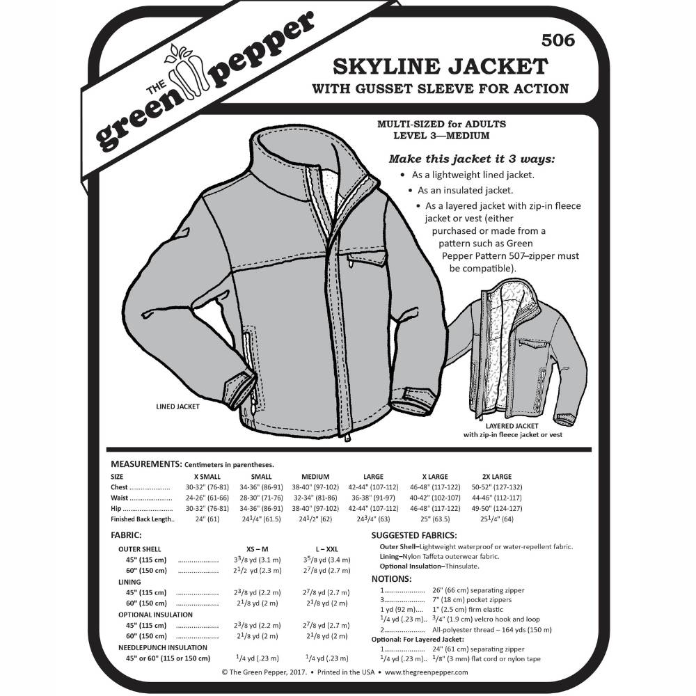 The Skyline Jacket sewing pattern is a versatile, lightweight jacket designed for layering and outdoor wear. Add insulation for a warmer jacket or pair it with a zip-in fleece vest or jacket (Pattern 507 Plush Polar Jacket & Vest) for extra warmth. Featuring gusseted sleeves for ease of movement, a zippered chest pocket with flap, and two zippered side pockets, this jacket combines functionality with style. Cuffs can be adjusted with Velcro tabs, and the stand-up collar helps keep the wind out.