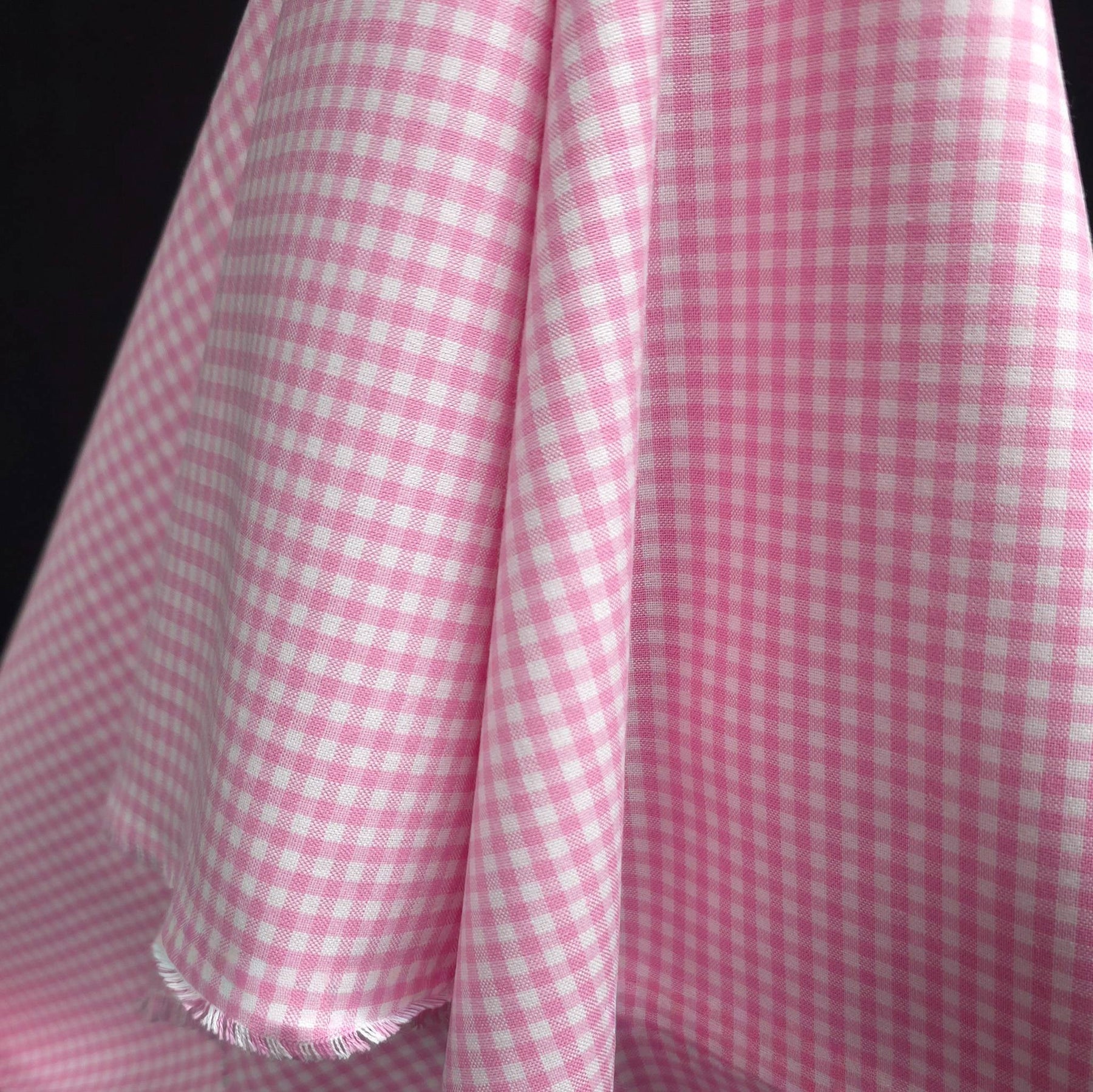 Carolina gingham cotton fabric candy pink 1/8 inch check Robert Kaufman draped fabric detail