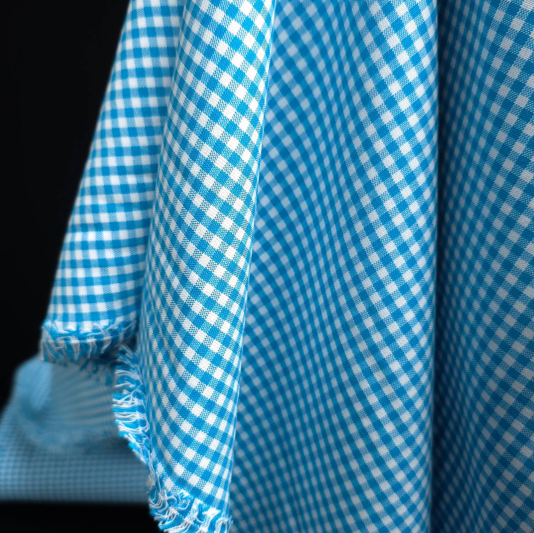 Carolina gingham cotton fabric turquoise blue 1/8 inch check Robert Kaufman draped fabric detail