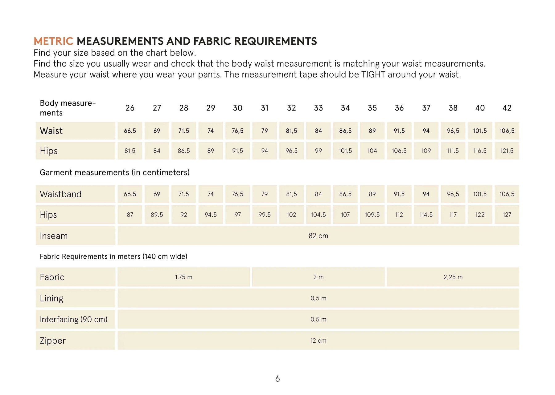 Flip through the images to find fabric requirements and measurements.