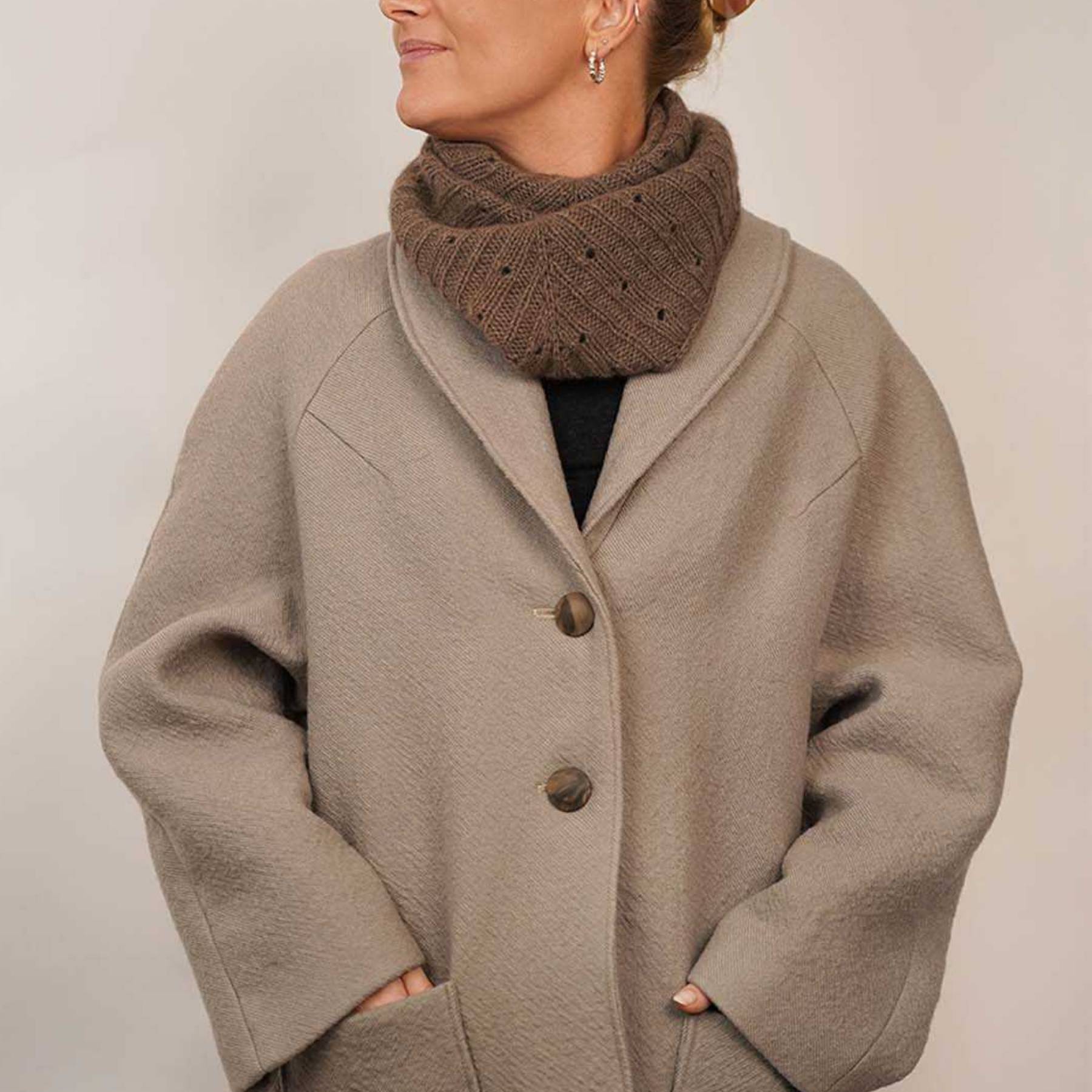 The Cocoon Coat sewing pattern is a fully lined women’s coat featuring a sculptural cocoon silhouette, raglan sleeves, and a classic shawl collar. Designed with an oversized fit and architectural shaping, this coat makes a bold yet timeless outerwear piece.