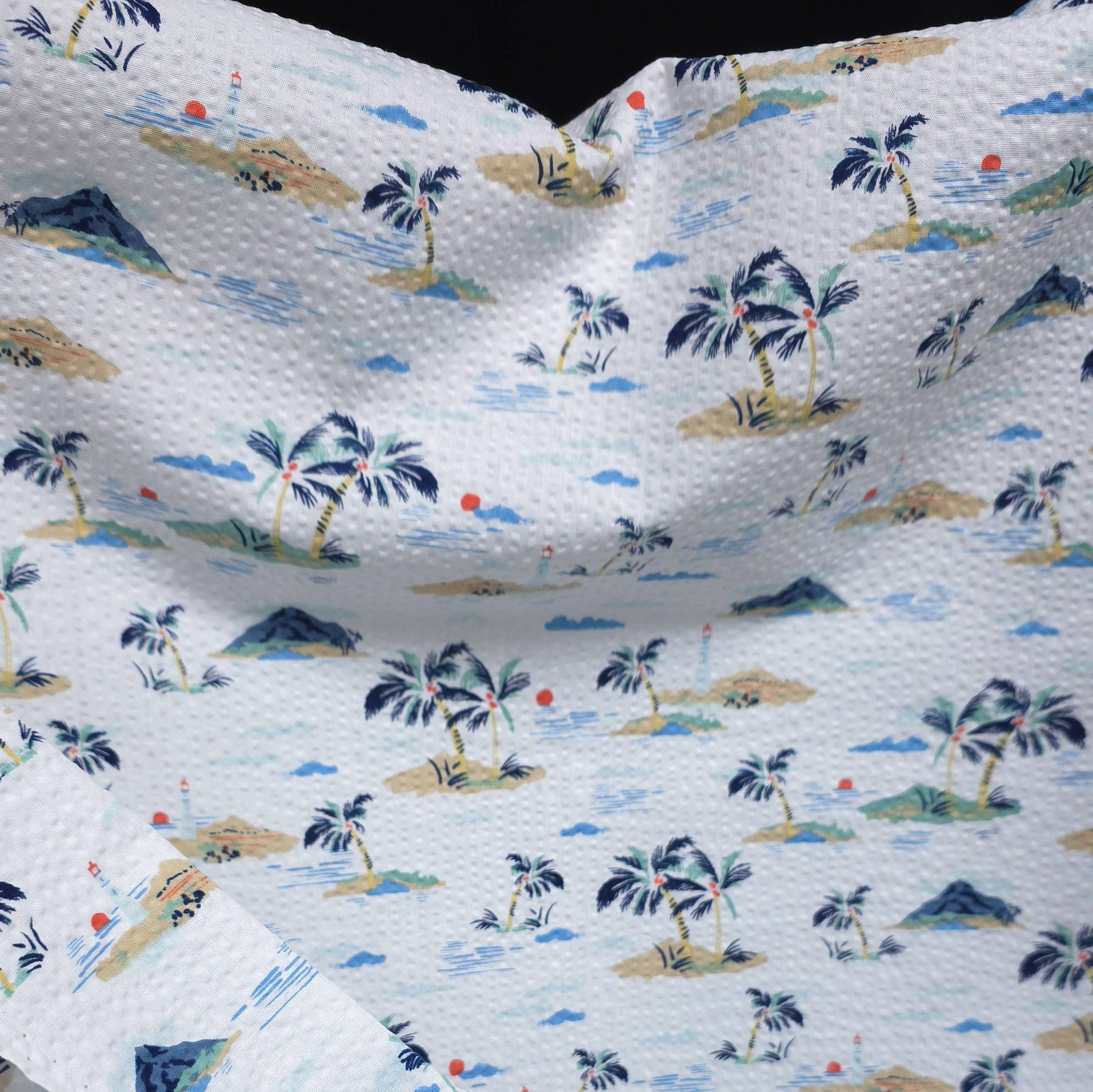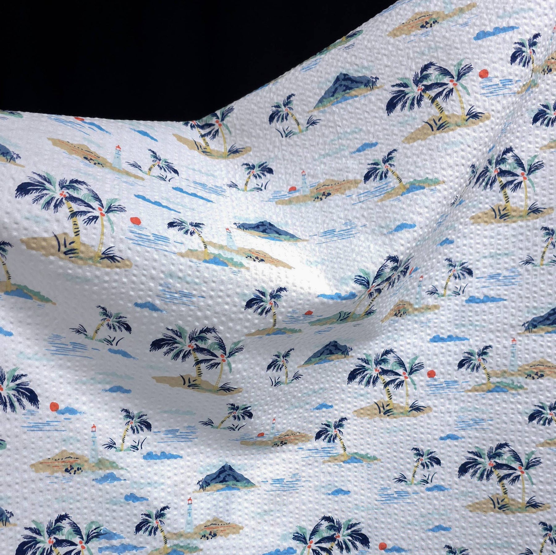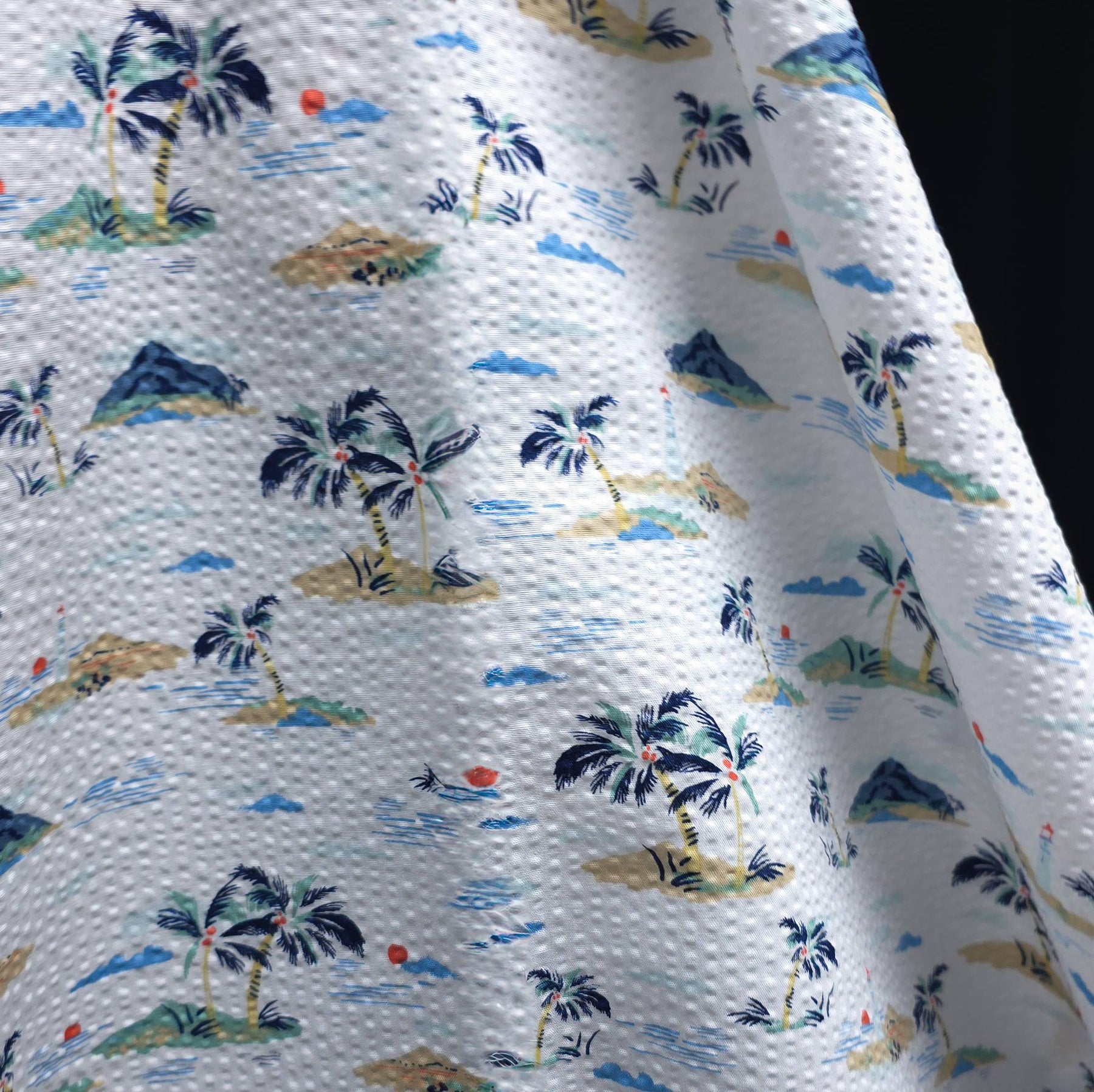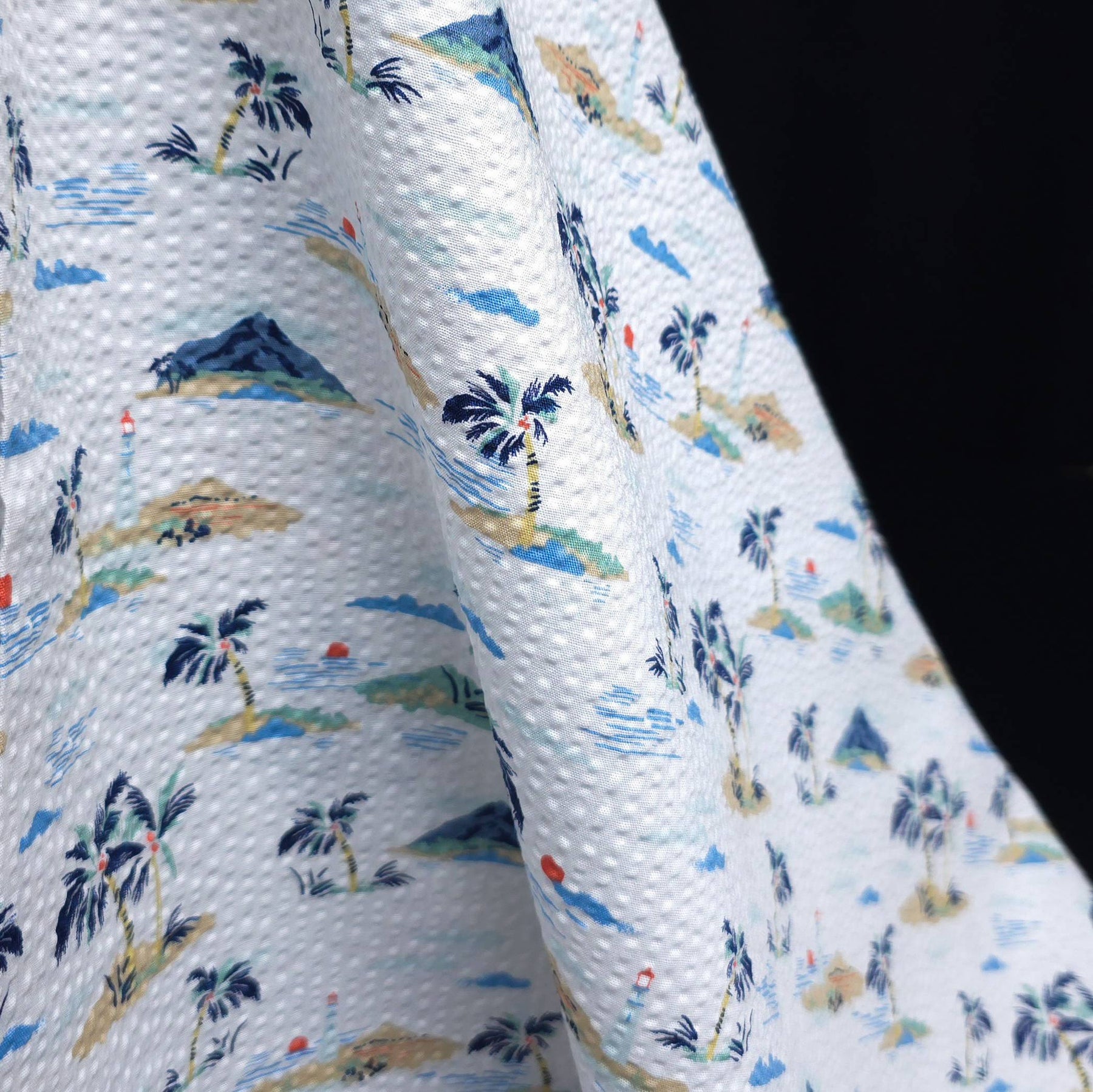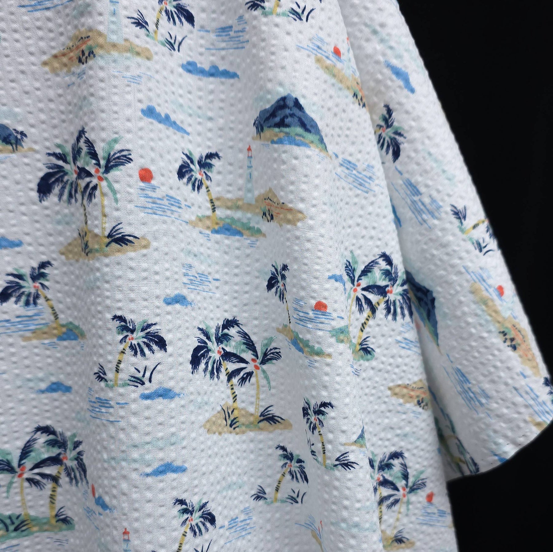 The crisp white color offers endless versatility, perfect for timeless summer pieces. Its textured surface requires little to no ironing, making it both practical and elegant.