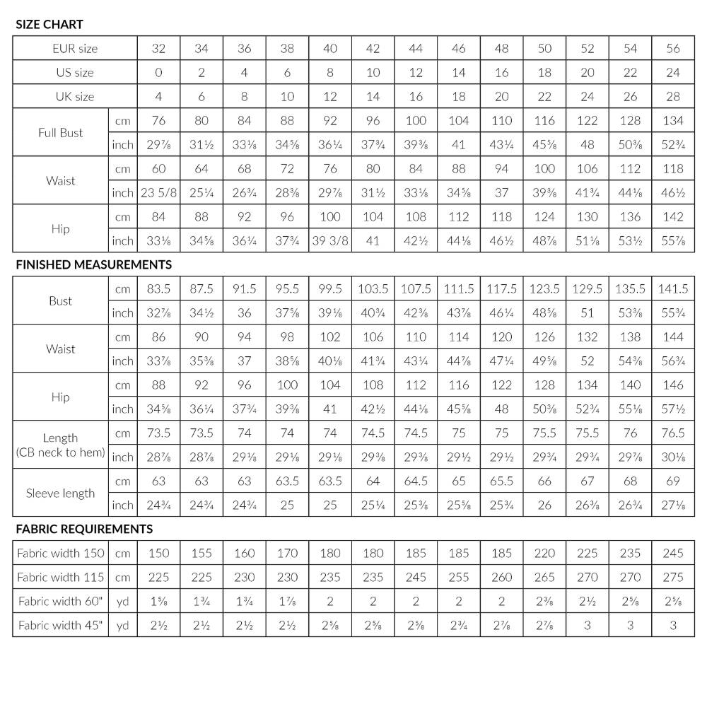 Sizes : EUR 32–56 / US 0–24 / UK 4–28