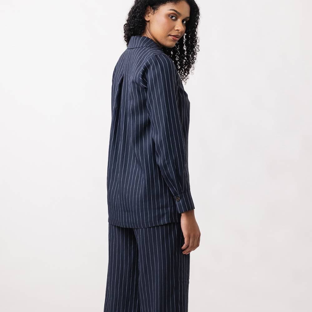 Design details include long sleeves with cuffs and sleeve slits, along with a back pleat for added ease and movement. The Elsi Shirt is ideal for sewists looking to create a versatile wardrobe staple with clean tailoring details.