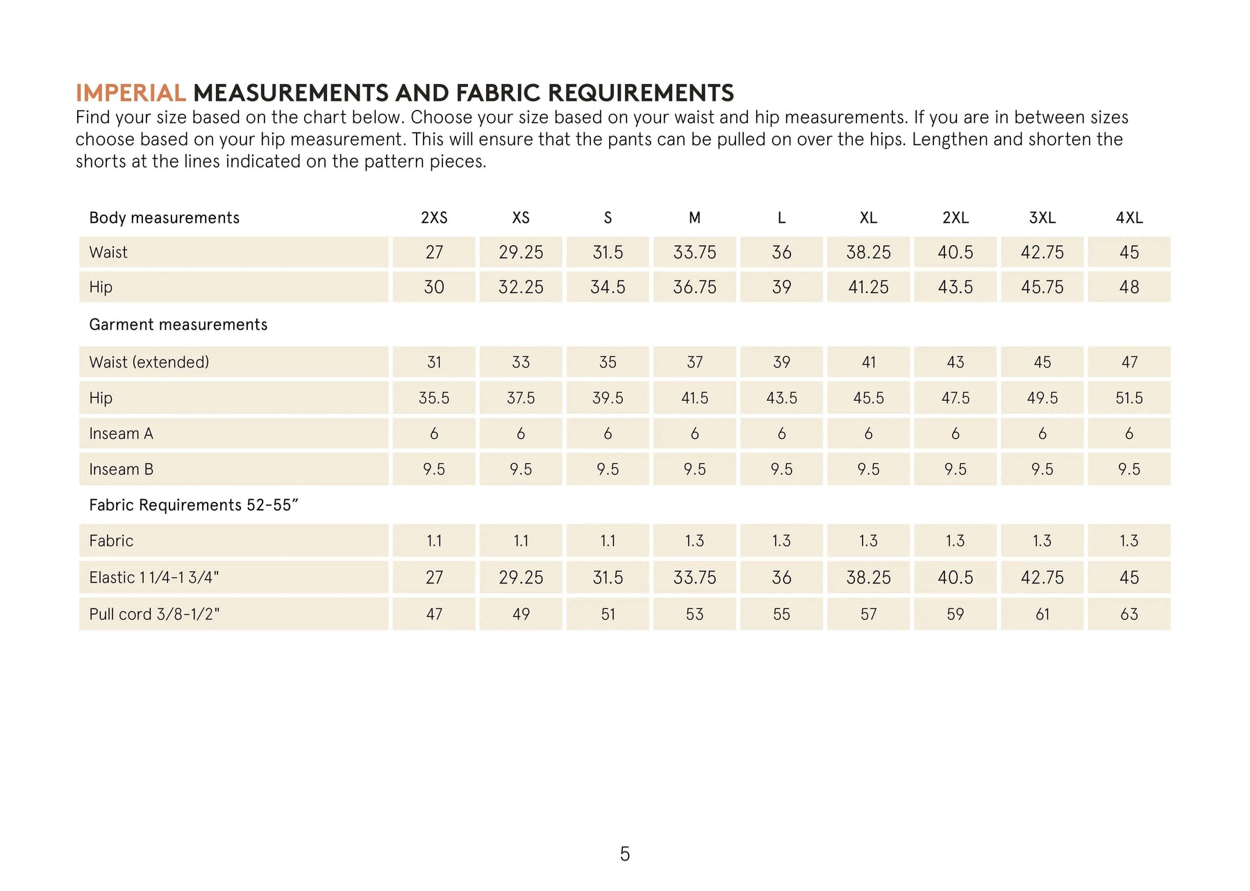 Seam allowances included