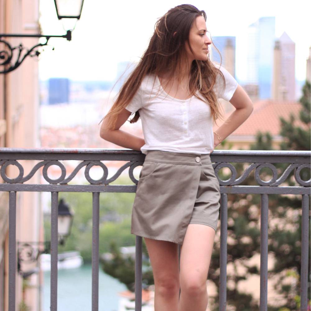 The Joséphine Shorts sewing pattern by Cha’Coud is a stylish and versatile design featuring a skirt-effect panel at the front, giving the appearance of a skirt while keeping the comfort of shorts.