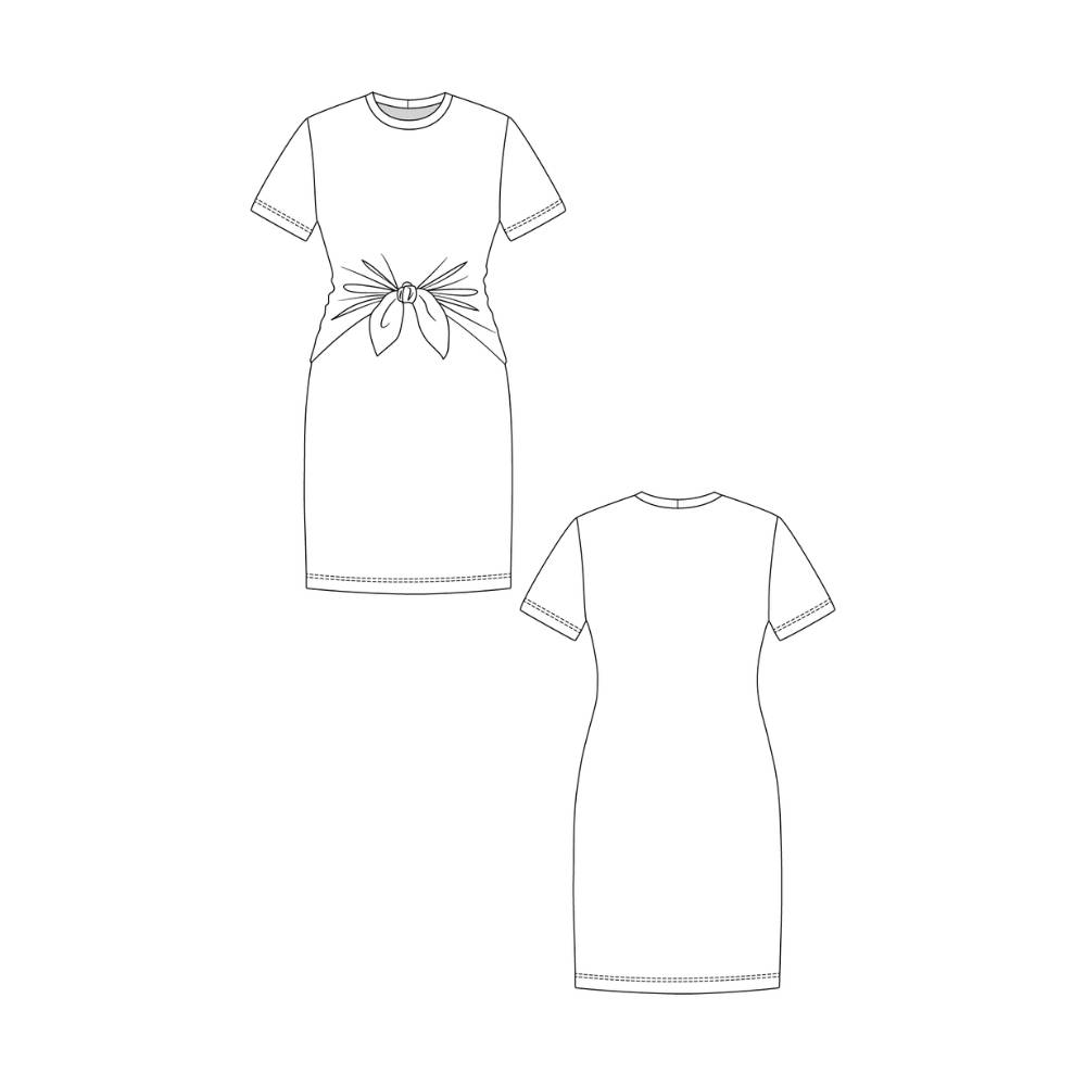 The Lyyti Dress is a charming, lightly fitted knit dress designed for both comfort and versatility. This pattern can be sewn in mini or maxi length, with short or long sleeves, making it suitable for multiple seasons.