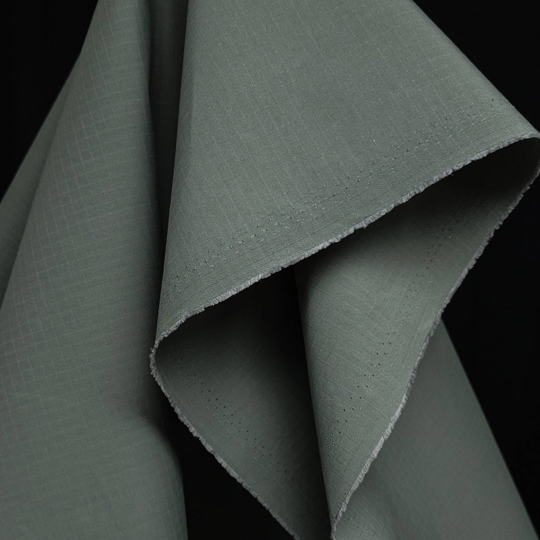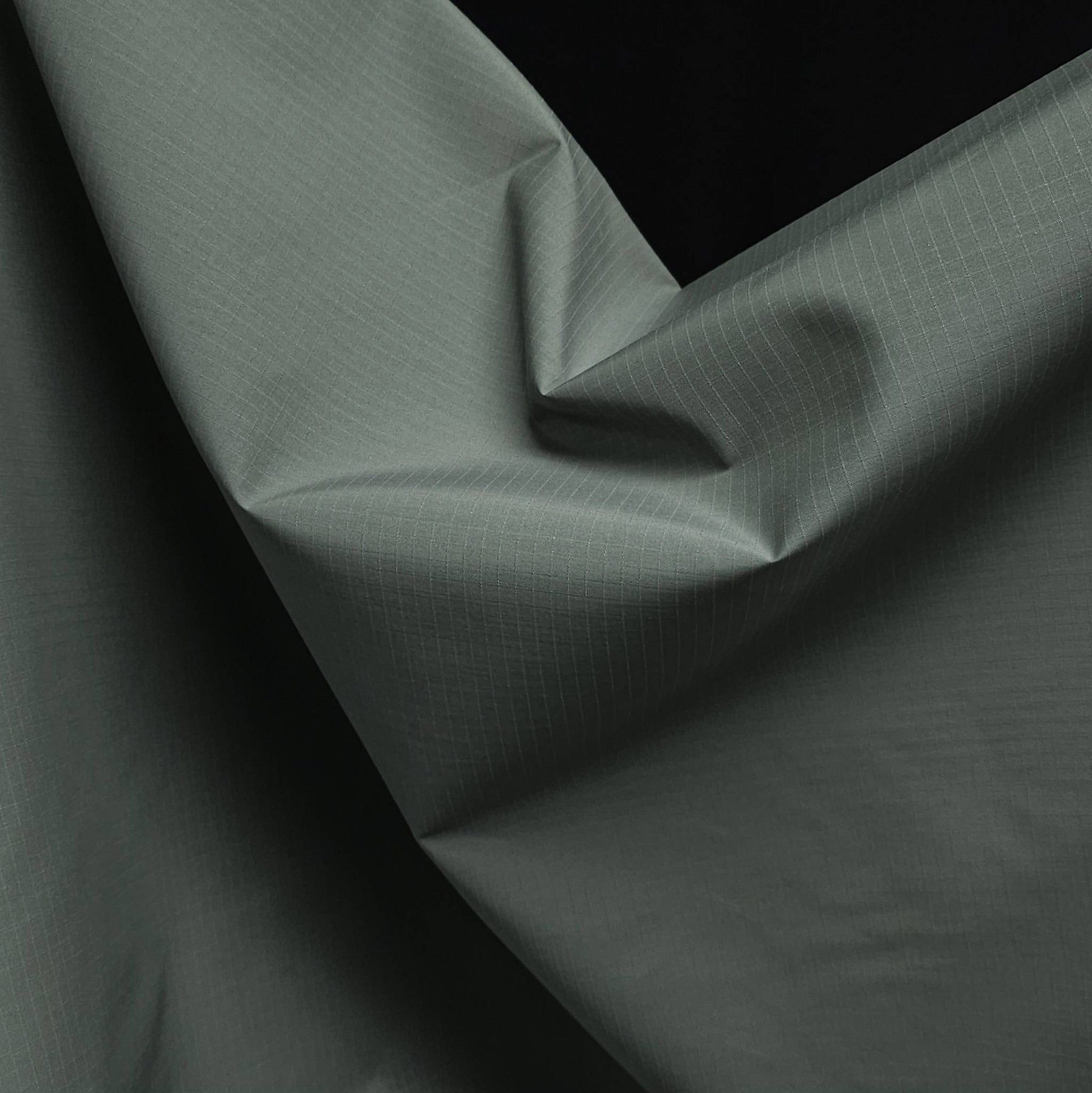 The ripstop construction, identifiable by its fine reinforced grid, improves tear resistance while maintaining flexibility and drape. Its matte finish gives the fabric a refined, non-shiny appearance, ideal for modern outerwear and utility garments.