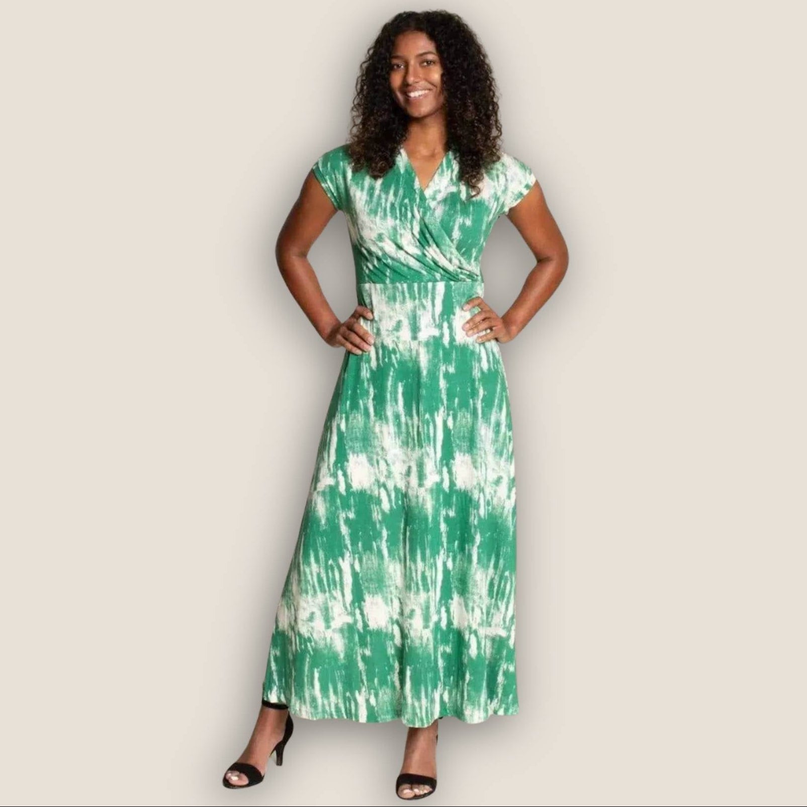 The Mirri Dress is a flattering faux wrap design featuring a shawl collar and modest V-neckline. Designed for jersey fabrics, it combines a fitted bodice with a softly flared A-line skirt for a timeless, feminine silhouette.
