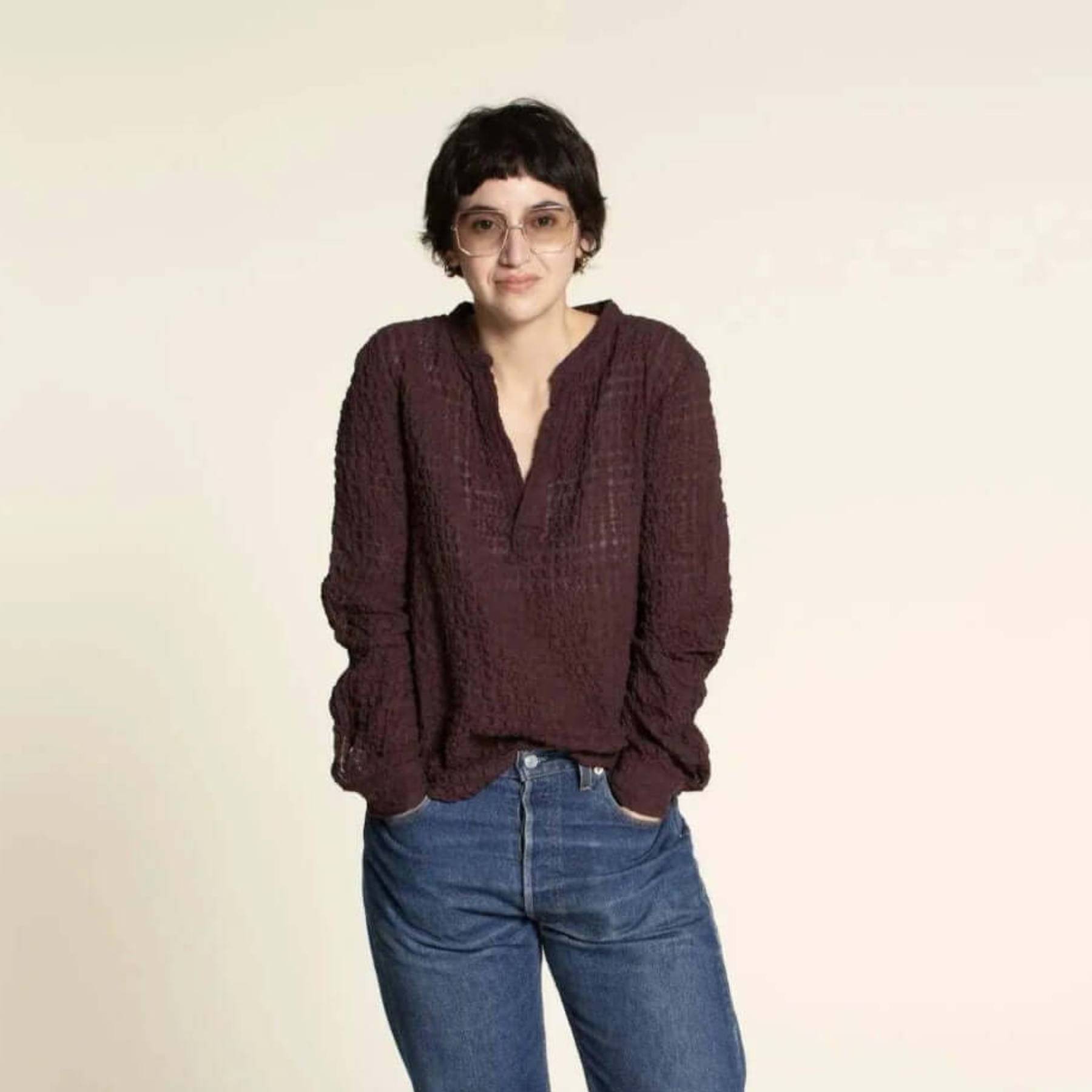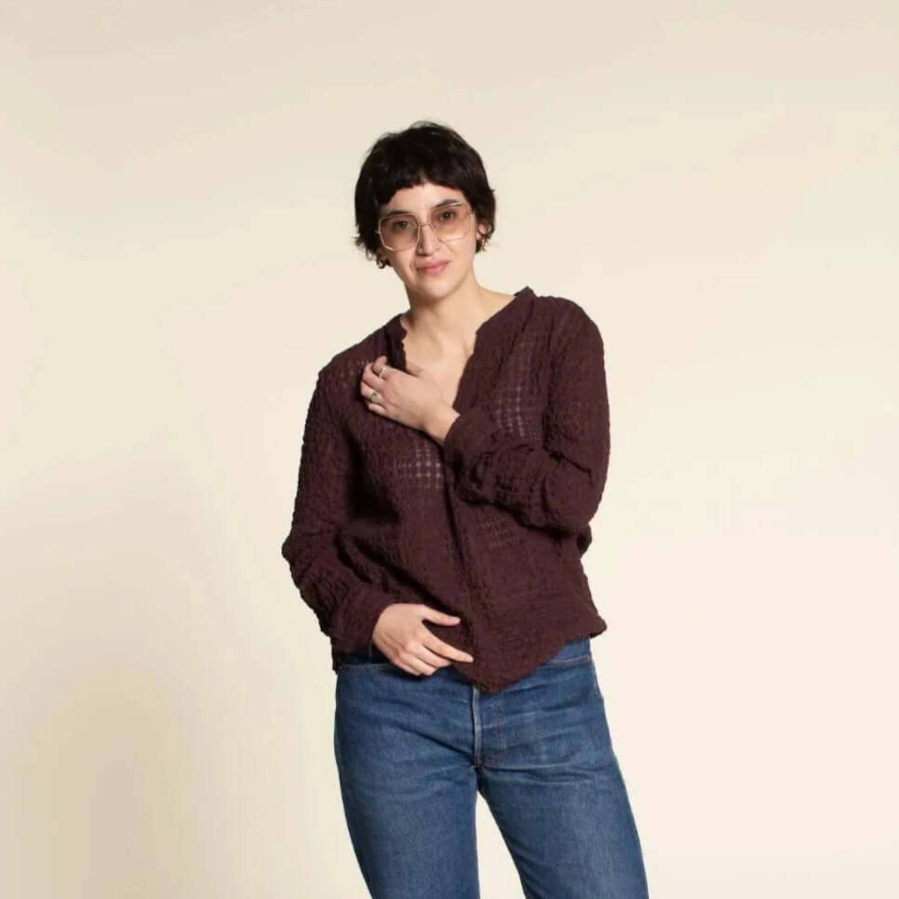 The Perfect Tunic is a relaxed pull-on top featuring a mandarin collar, front placket, and double yoke with a back pleat for ease and comfort. Designed with timeless shirt details, it offers a flattering silhouette suitable for everyday wear.
