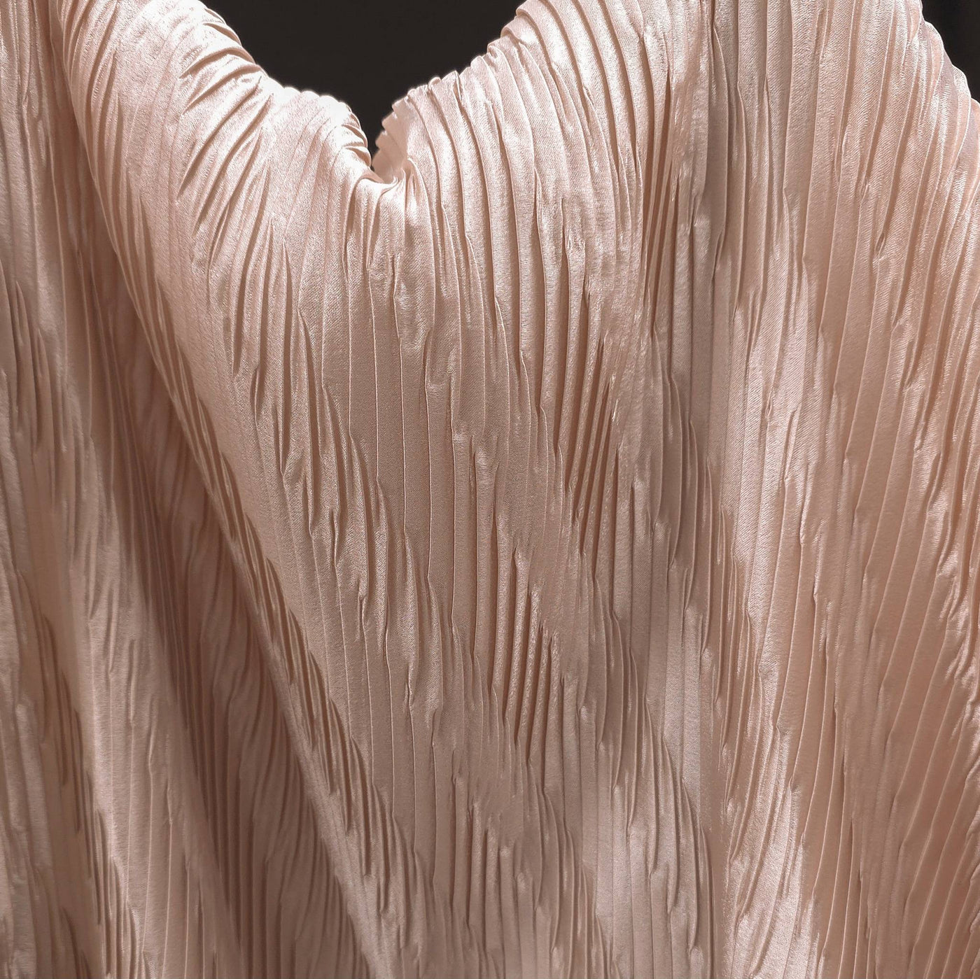 This plissé fabric, offers a lightweight yet textured material perfect for creating elegant and flowy garments.
