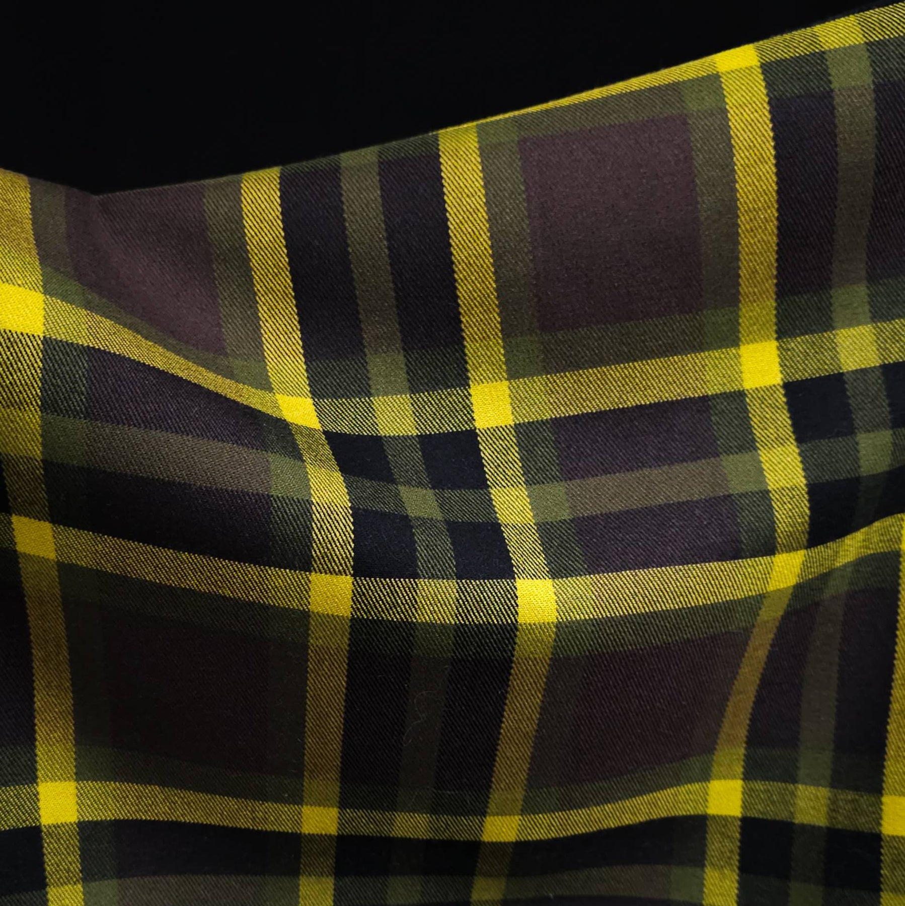 Poly Viscose Twill Plaid Fabric | Yellow & Olive Check