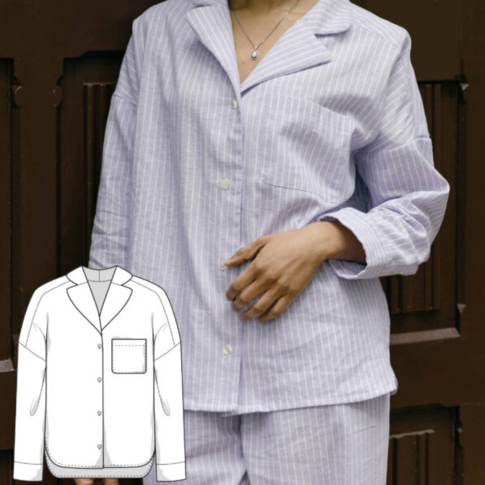 The Serena Pyjama Top sewing pattern by Juliana Martejevs is a cozy yet stylish blouse designed for both loungewear and everyday wear. With its relaxed, oversized fit and clean button-front design, Serena can be worn as a classic pyjama top, a lightweight summer blouse, or an effortless casual shirt.