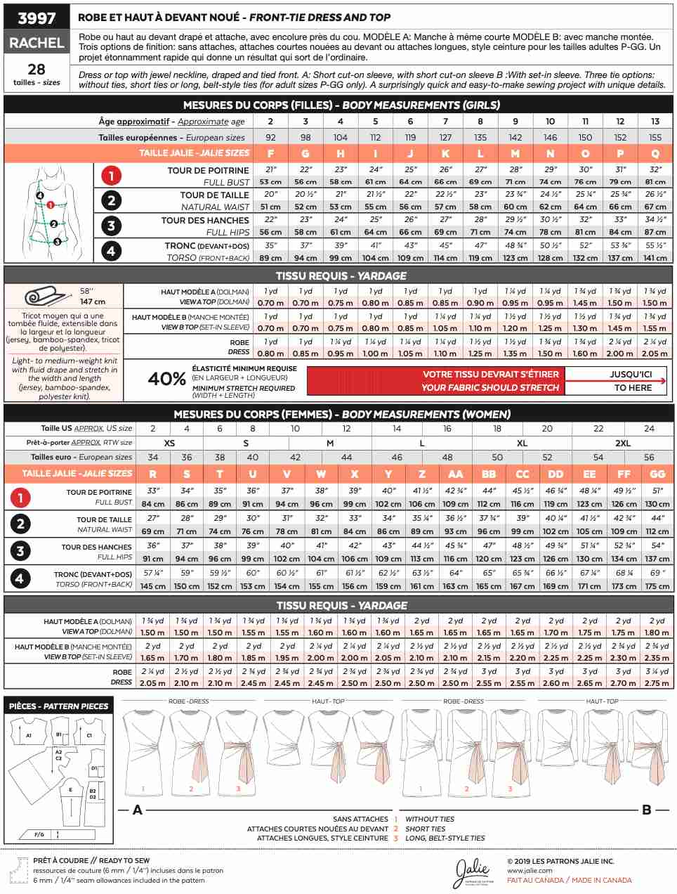 PDF SEWING PATTERN | 3997 | RACHEL Front-Tie Dress and Top | Jalie