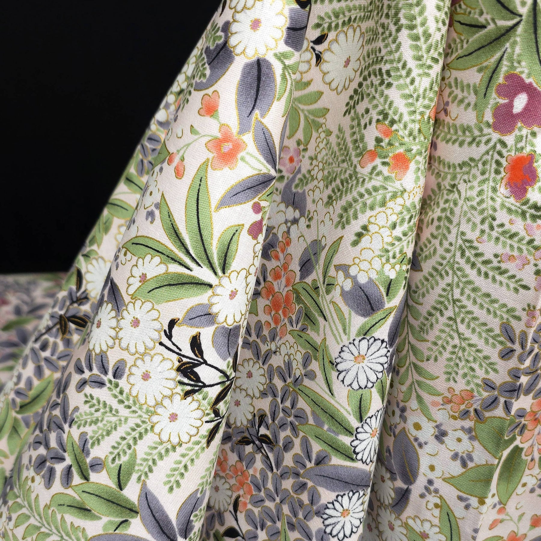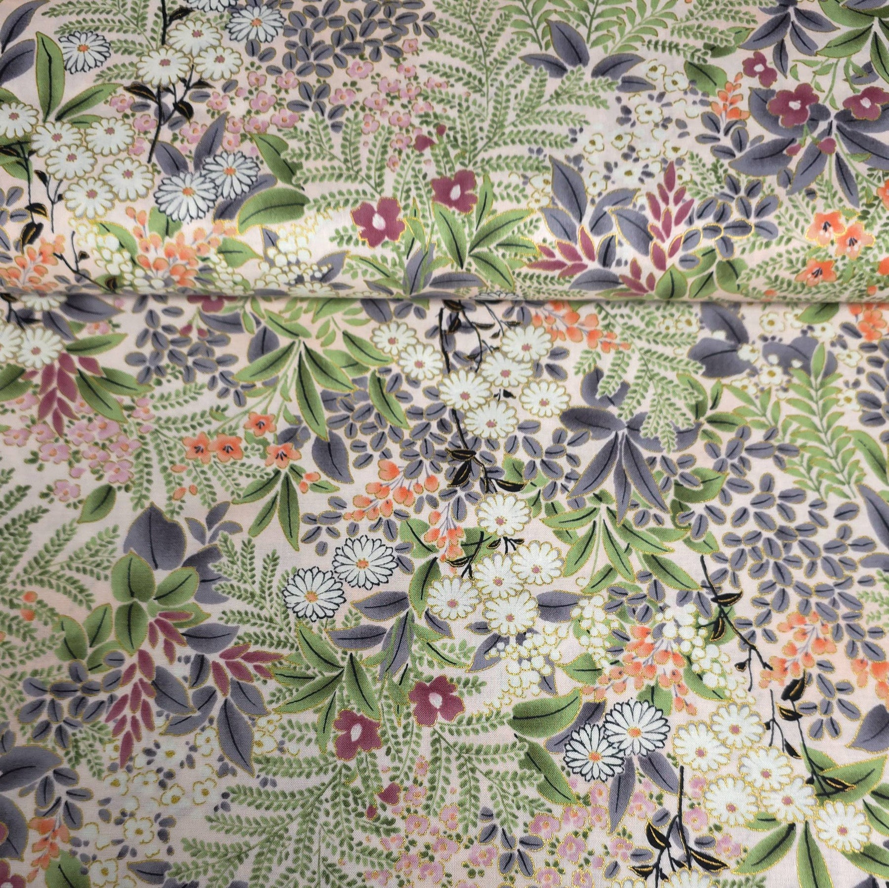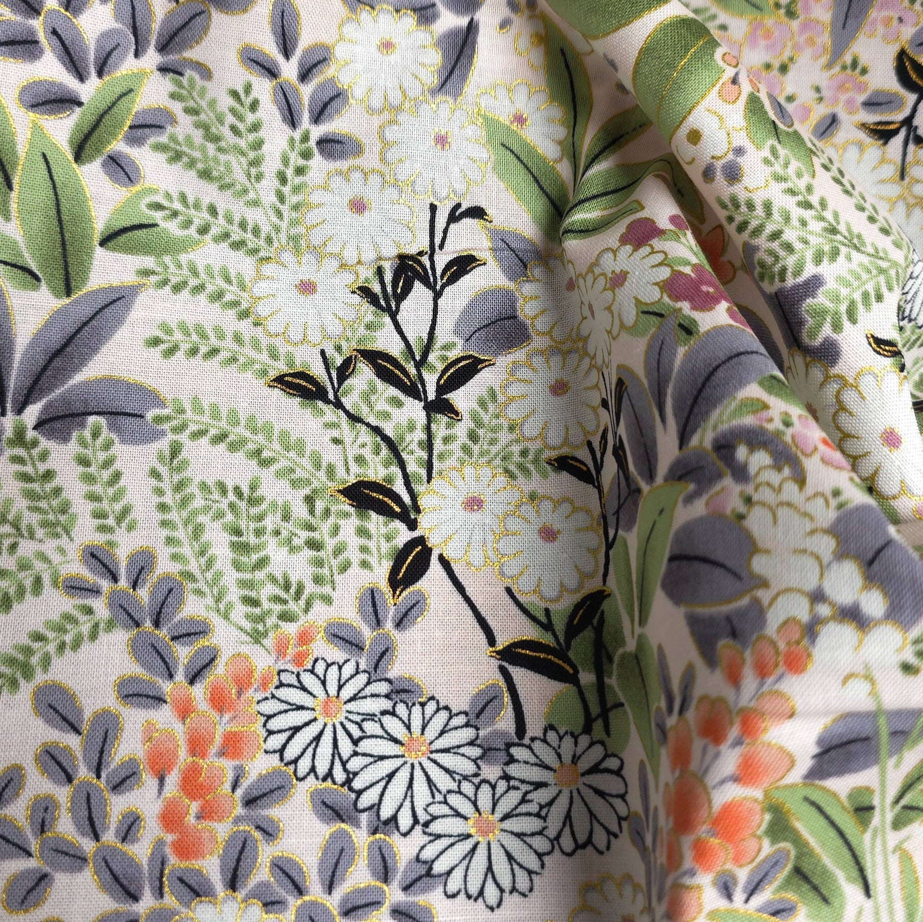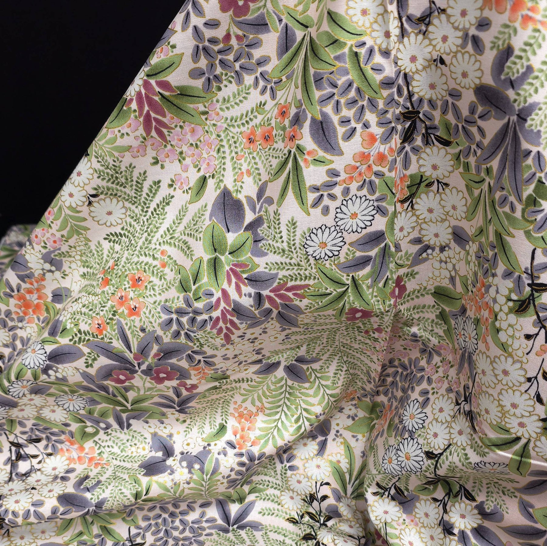 Robert Kaufman Cotton Fabric | Imperial Collection Honoka | Garden | Metallic