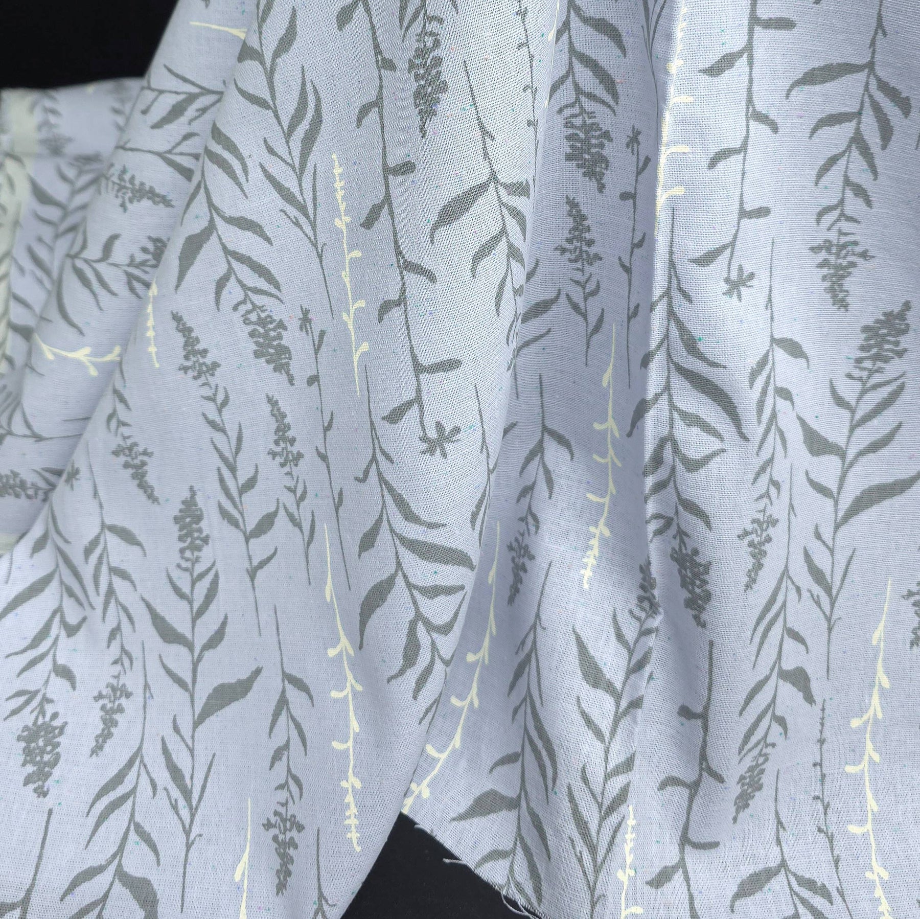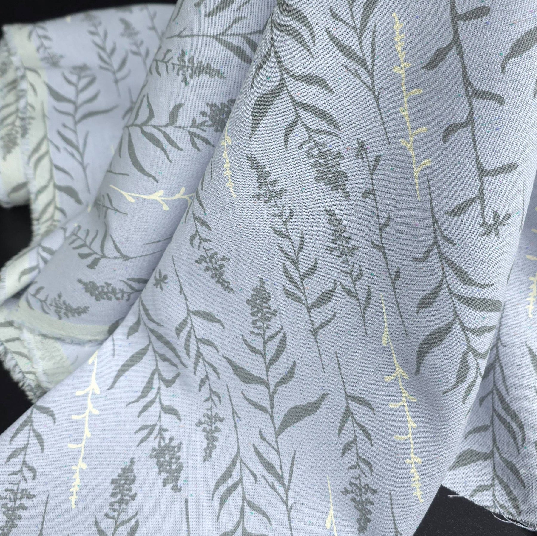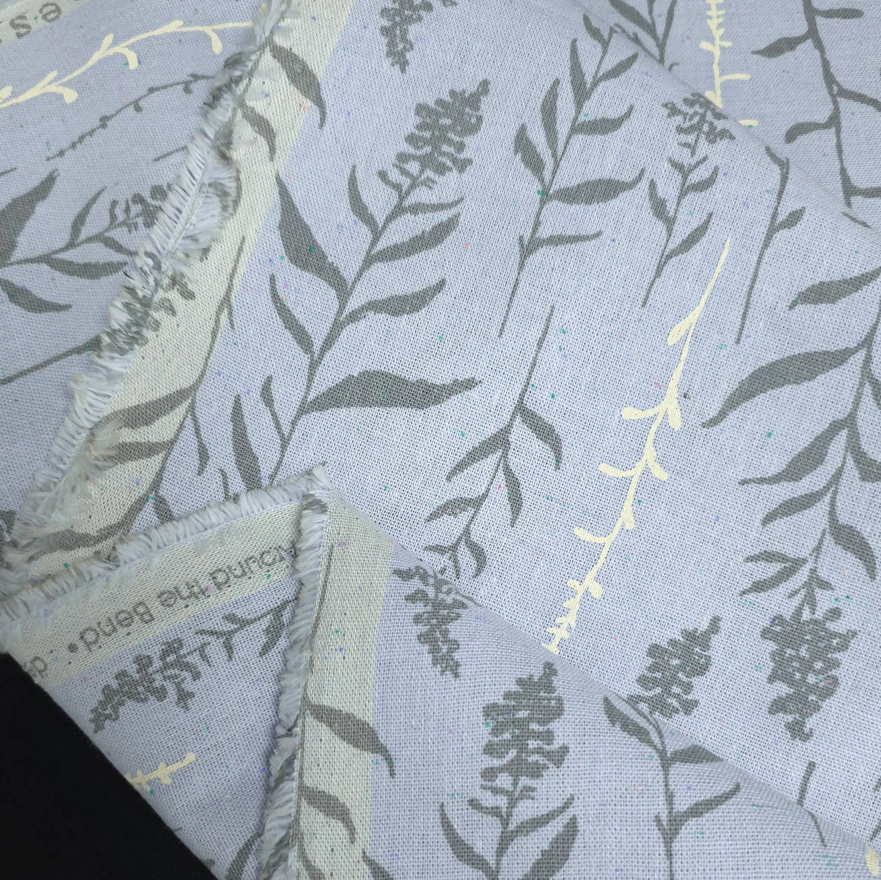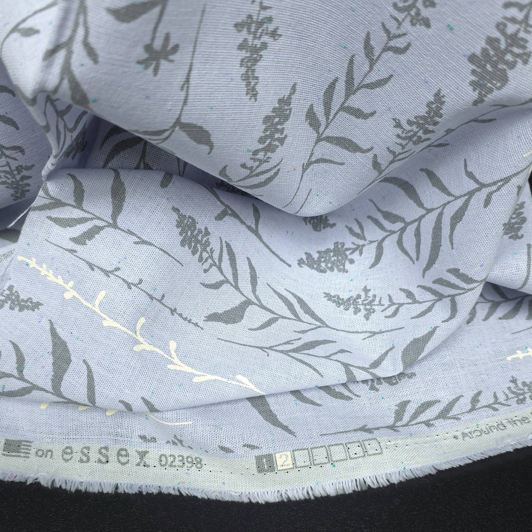 This beautiful fabric from the Around the Bend collection by Robert Kaufman features a delicate botanical print in soft sky blue, grey and pale yellow tones. Printed on Essex linen cotton, it has a natural texture, a soft hand and an elegant drape that works beautifully for both sewing and home projects.