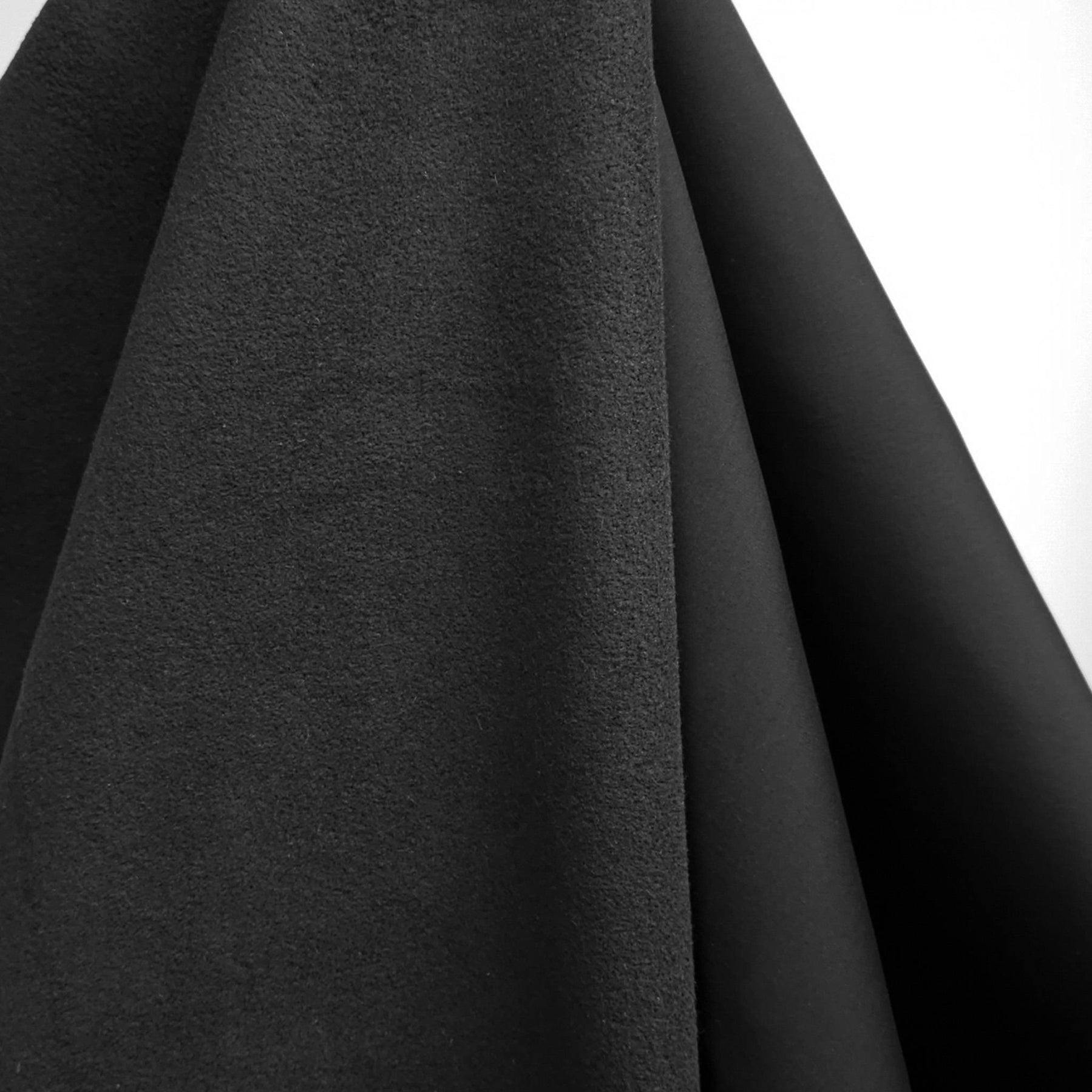 This black softshell fabric is a Canada Goose deadstock material originally developed for performance outerwear and technical garments.