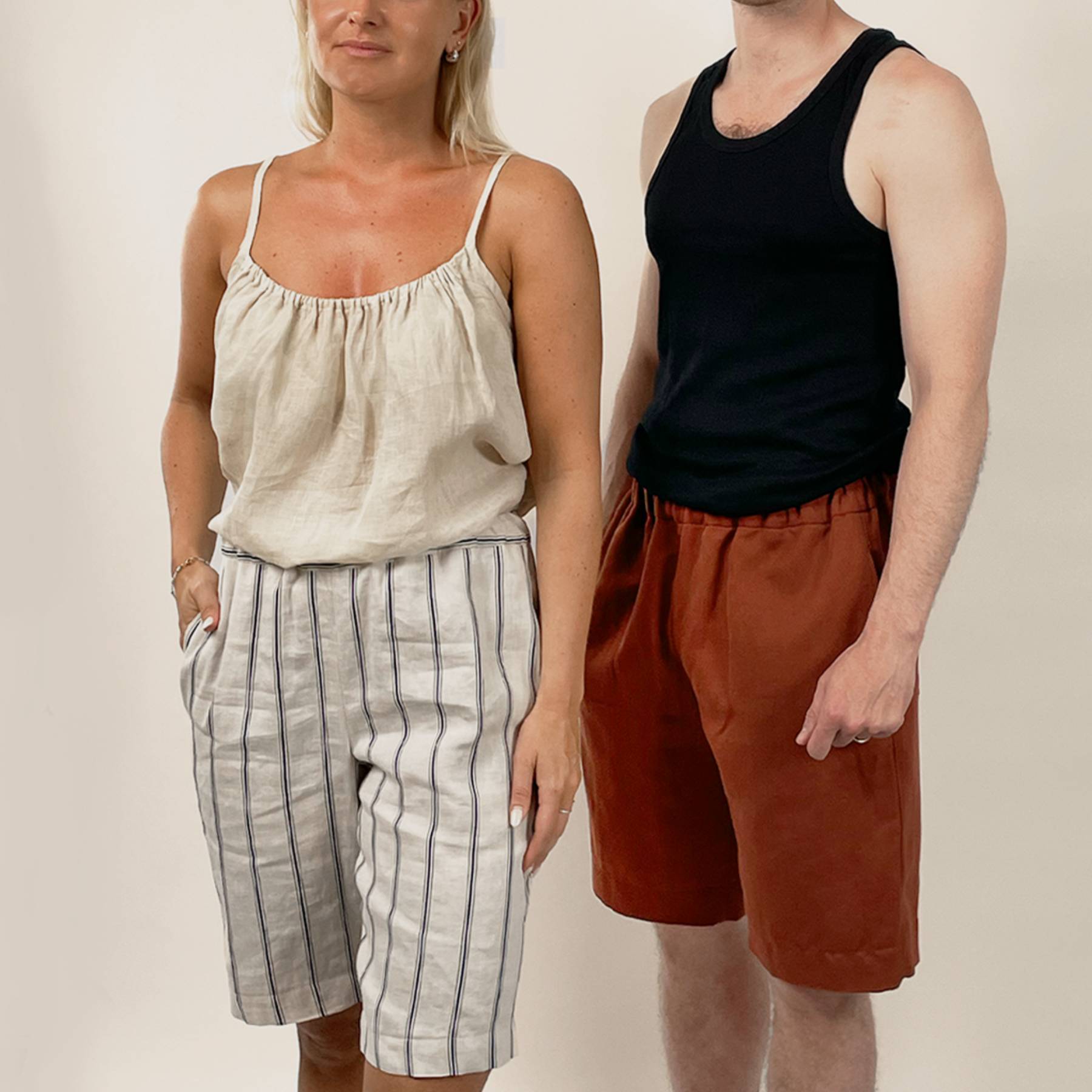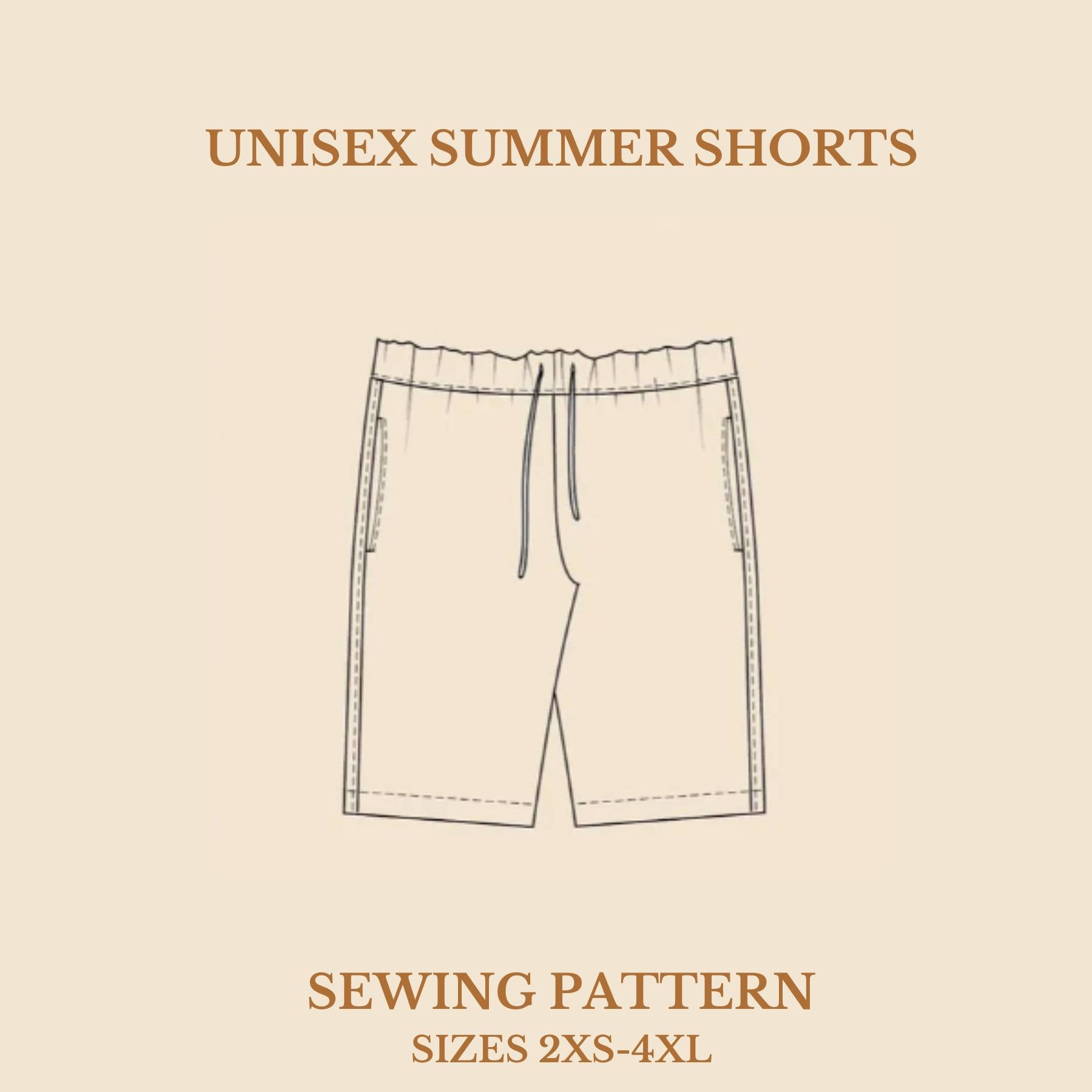 Drafted as a unisex pattern, the design includes extra waist ease and is shaped with elastic (optional drawstring) to accommodate different waist-to-hip ratios. Knee-length with a relaxed fit, they are perfect for warm-weather sewing.