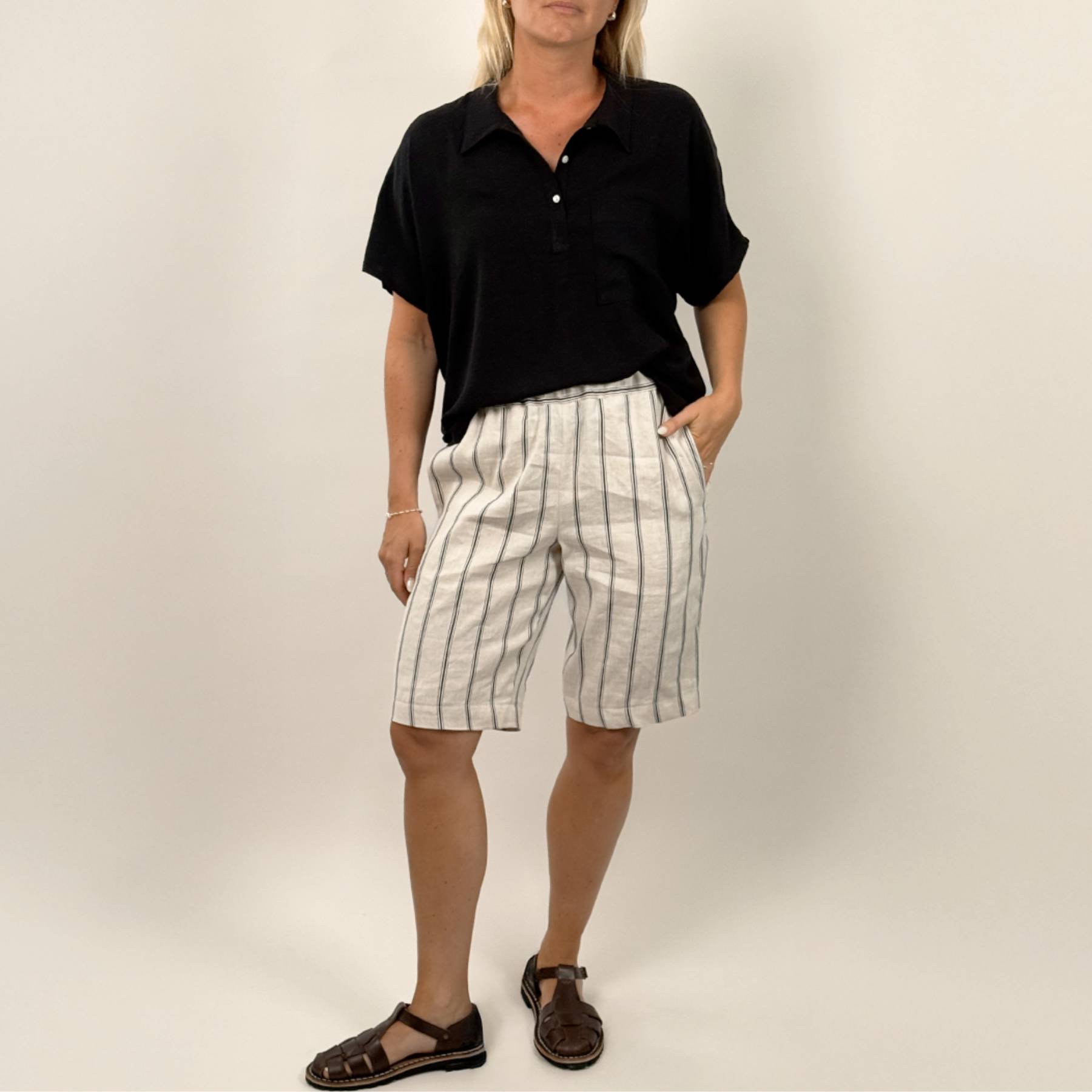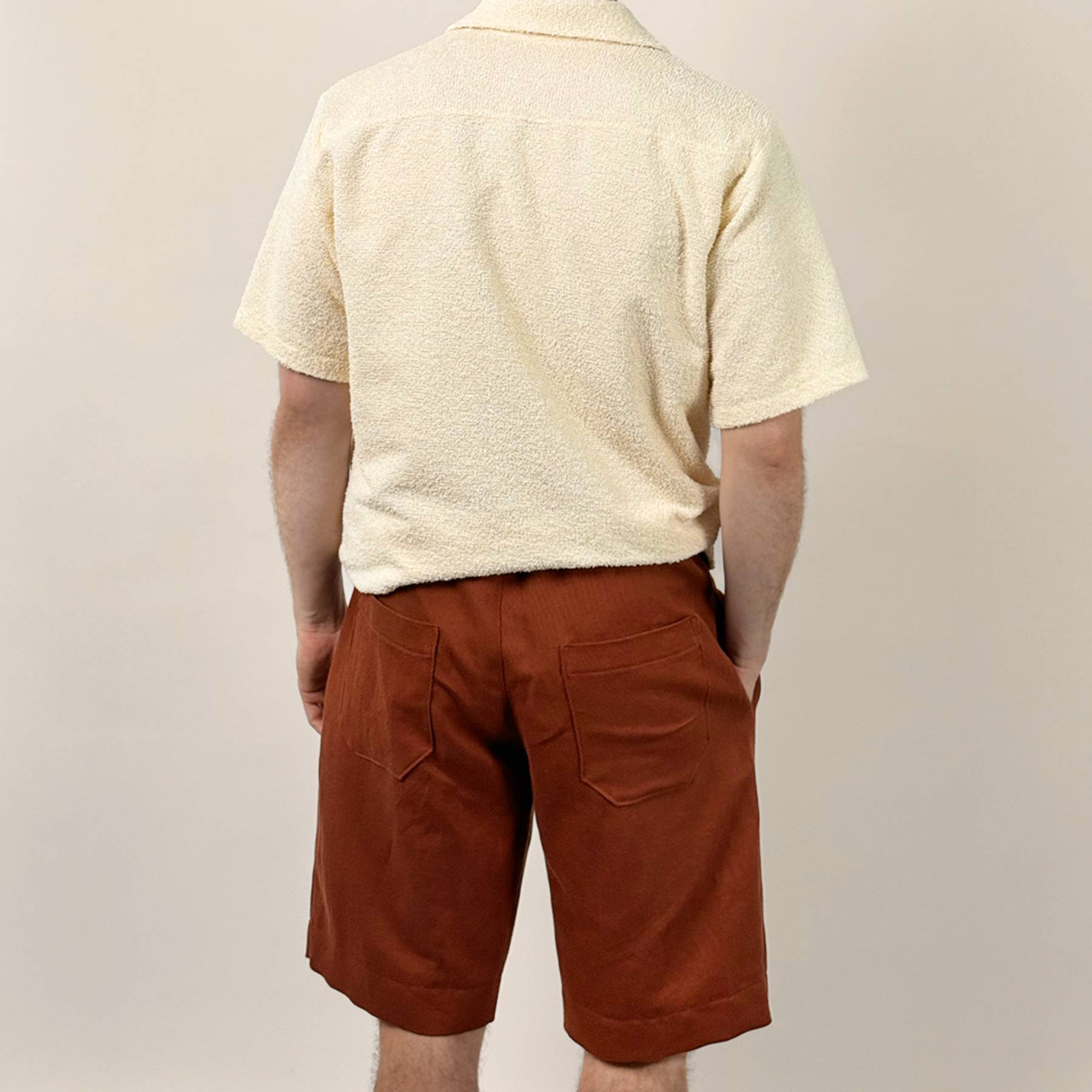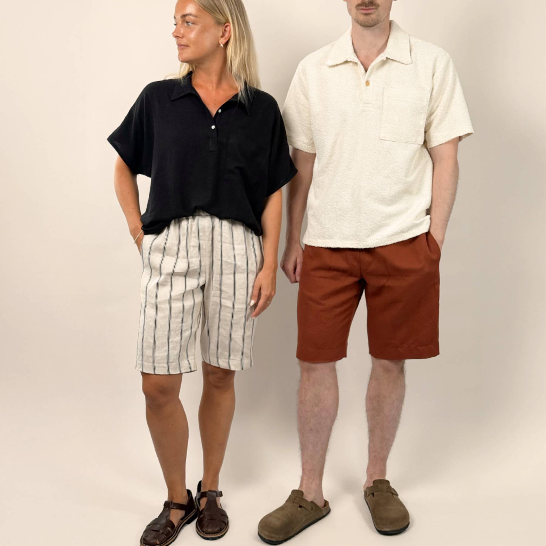 The Summer Shorts are relaxed pull-on shorts designed for woven fabrics. Featuring an elastic waistband, side pockets, and back pockets, they offer comfort and versatility for everyday wear.