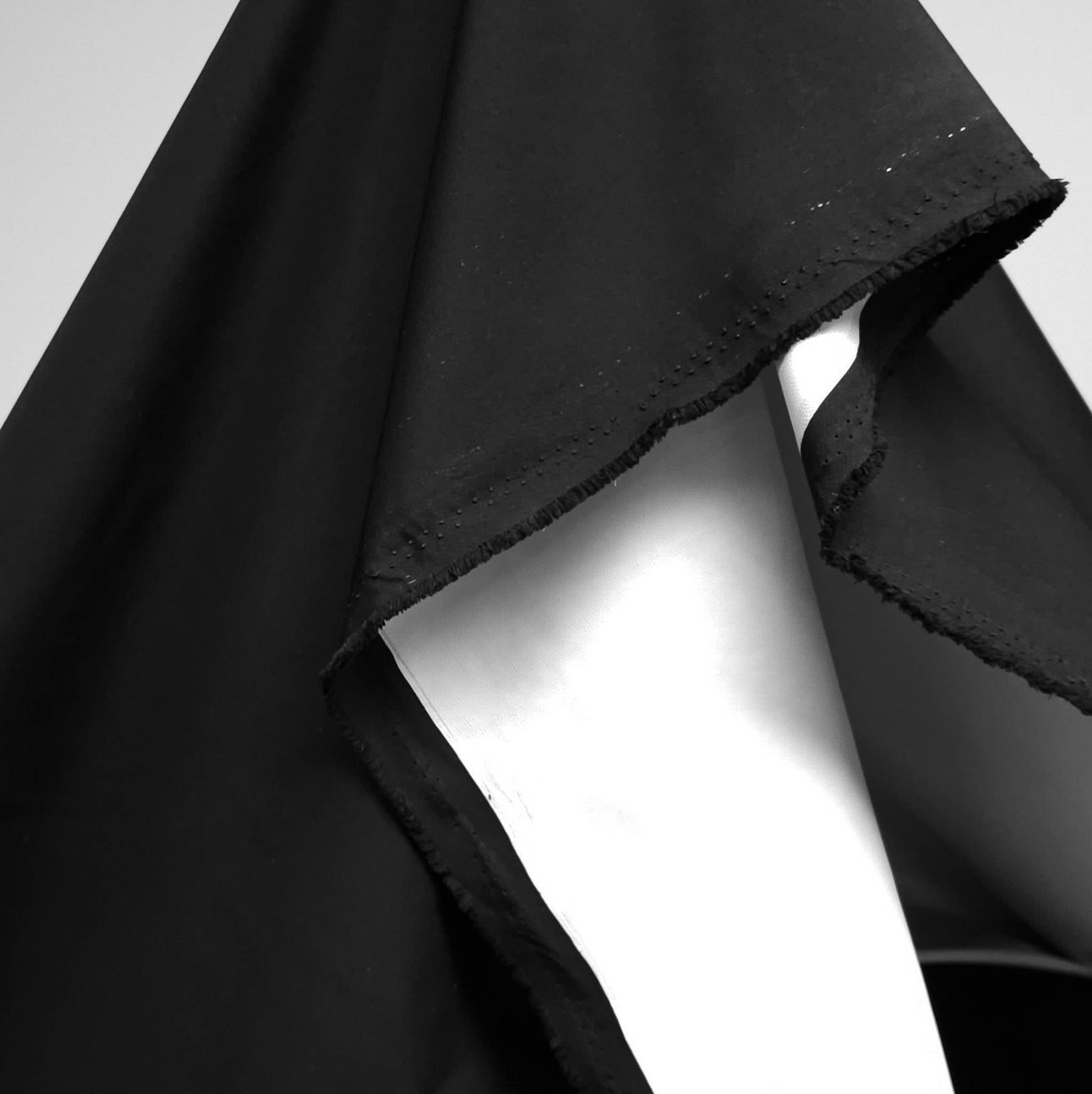 The fabric has a structured hand and stable drape, ideal for outerwear that needs to maintain shape while offering protection from the elements. The smooth surface allows for easy layering and professional garment construction.